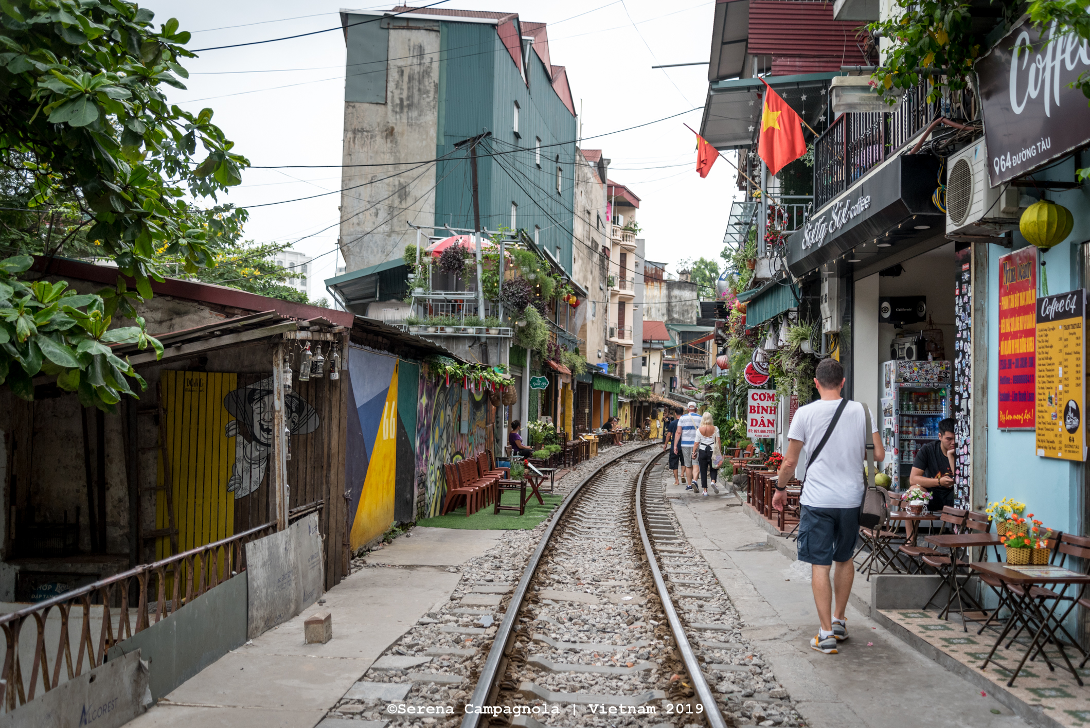 Dopo esserci fermati a bere qualcosa al The Railway Hanoi, abbiamo camminato per un po’ lungo la linea ferroviaria. Mi ha stupita la capacita di valorizzare, da un punto di vista turistico, una zona che oggettivamente dovrebbe essere considerata brutta. Hanno trasformato dei piccoli vani, dei “buchi”, in bar o locali, con seggioline anche fuori. La zona è veramente particolare ed affascinante, anche se il treno non siamo riusciti a vederlo!