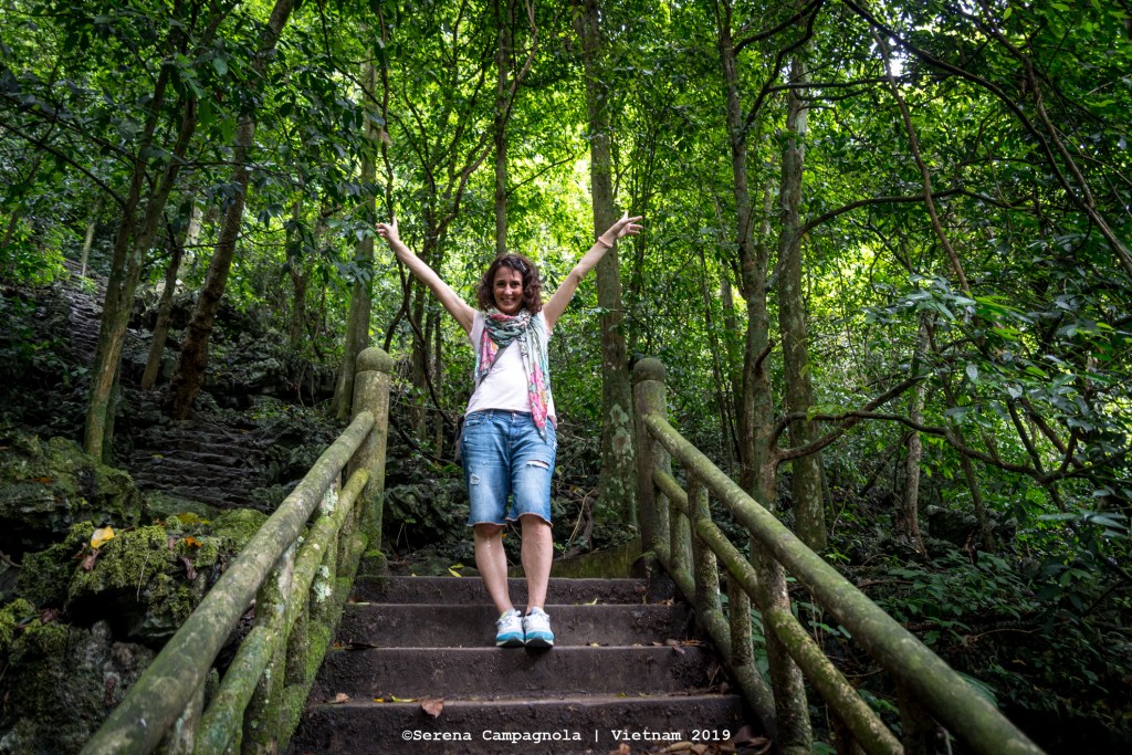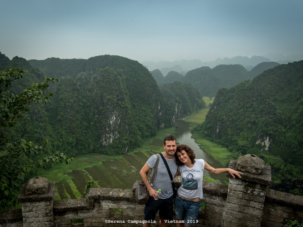 Con il passare del tempo fortunatamente la pioggia ha iniziato ad attenuarsi e quindi dopo aver ammirato il panorama direttamente dal fiume e quindi dal basso, siamo andati verso Mua Cave…non so quanti siano i gradini, ma con l’umidità che è uscita dopo la pioggia, sono arrivata in cima distrutta. La vista ripaga sempre e comunque lo sforzo! Non c’era il sole e di conseguenza il verde del riso non era accesissimo. Il panorama è veramente suggestivo, mozzafiato. Vi consiglio di portarvi almeno una bottiglietta d’acqua!