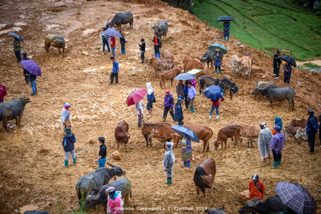 Nonostante la pioggia intensa della mattina, siamo andati in uno dei mercati più colorati della regione Lao Cai, il mercato di Can Cau (circa 2 ore di strada). A causa del maltempo non era affollato come al solito.