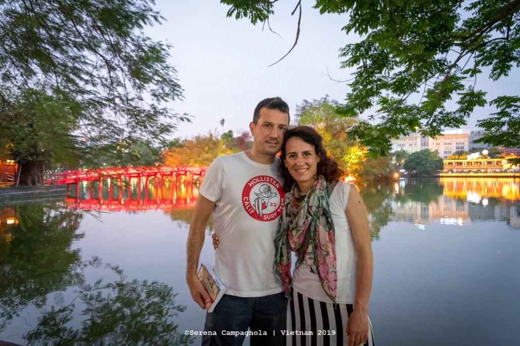 Il Tempio di Bach Ma purtroppo era già chiuso e ci siamo dovuti tornare. Abbiamo proseguito per Pho Ta Hien (strada nota per i bar aperti fino a tardi), fino all’angolo con Hang Ba, strada delle gioiellerie. Anche la Casa museo (Ancient House) era chiusa e ci siamo tornati. Proseguendo su Hang Be, dopo aver attraversato Cau Go negozi di scarpe, siamo andati verso il teatro delle Marionette per capire come funzionava la prenotazione dello spettacolo. Ci siamo diretti verso il Ponte di Huc, l’elegante ponte rosso, e Tempio di Ngoc Son…anche quelli chiusi.