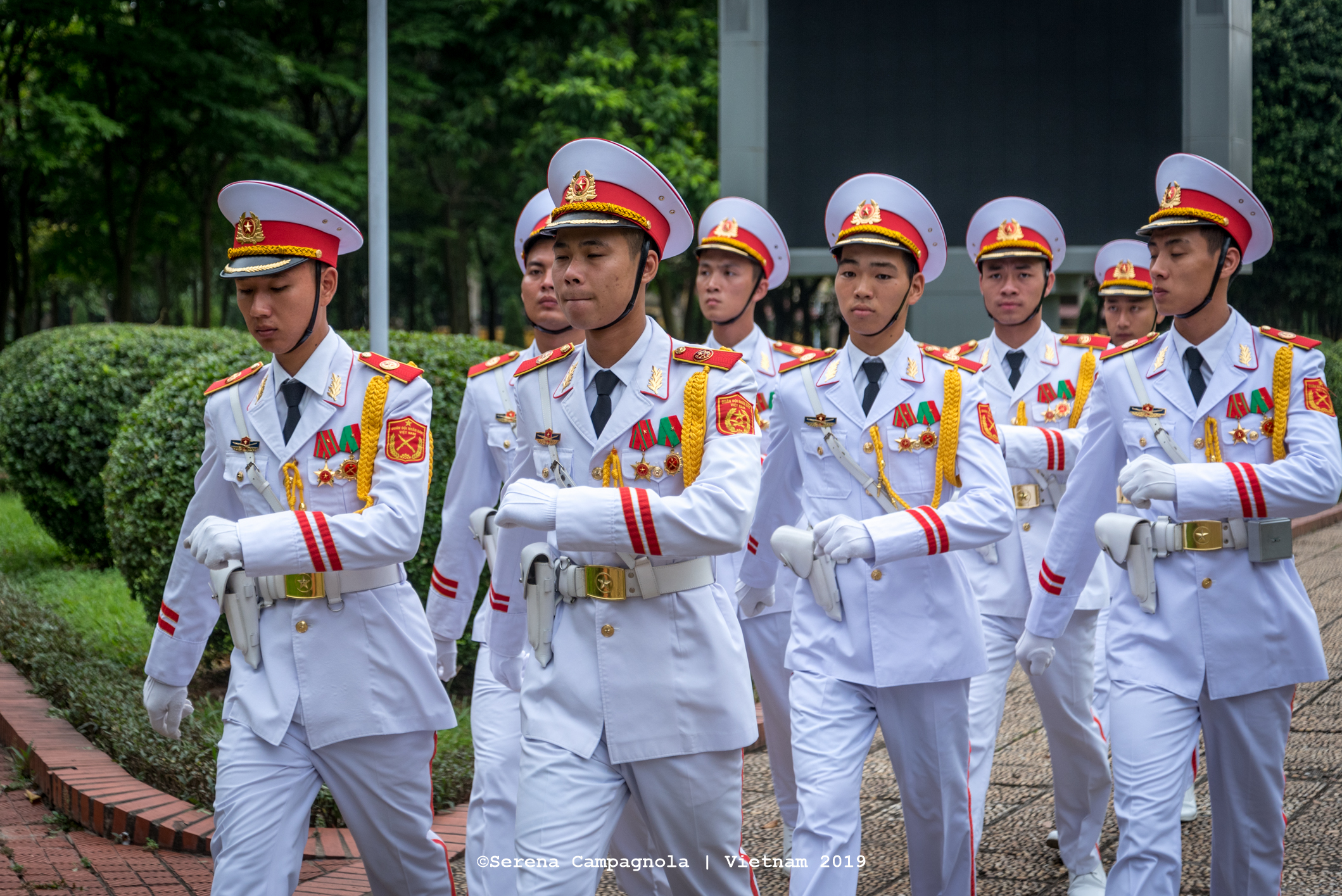 Dissetati, siamo ripartiti con il nostro itinerario verso il Vietnam Military History Museum e Torre della Bandiera (ingresso gratuito dalla caffetteria),Citadelle imperiale Thăng Long, Mausoleo di Ho Chi Minh (solo da fuori perché aperto solo la mattina). Abbiamo visto da dietro l’inizio del Cambio della Guardia.