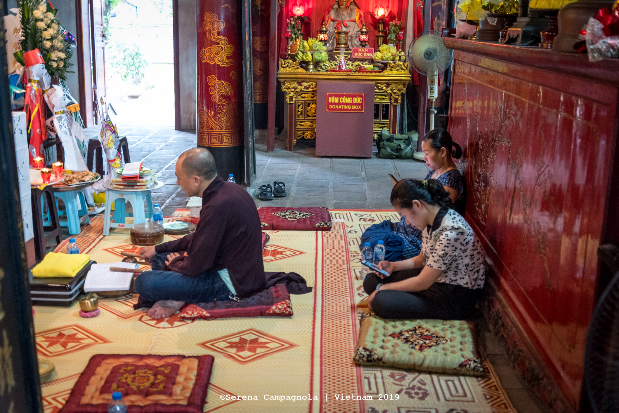 E’ venuto a prenderci in Hotel alle 9. Gli ho chiesto di portarci nei posti che avevamo trovato chiusi il primo giorno: Tempio di Bach Ma, Ancient House, Ponte di Huc (ponte rosso) e Tempio di Ngoc Son. Devo dire che è stato interessante girare con un ragazzo del posto, dialogare con lui e capire in modo più profondo il Vietnam.