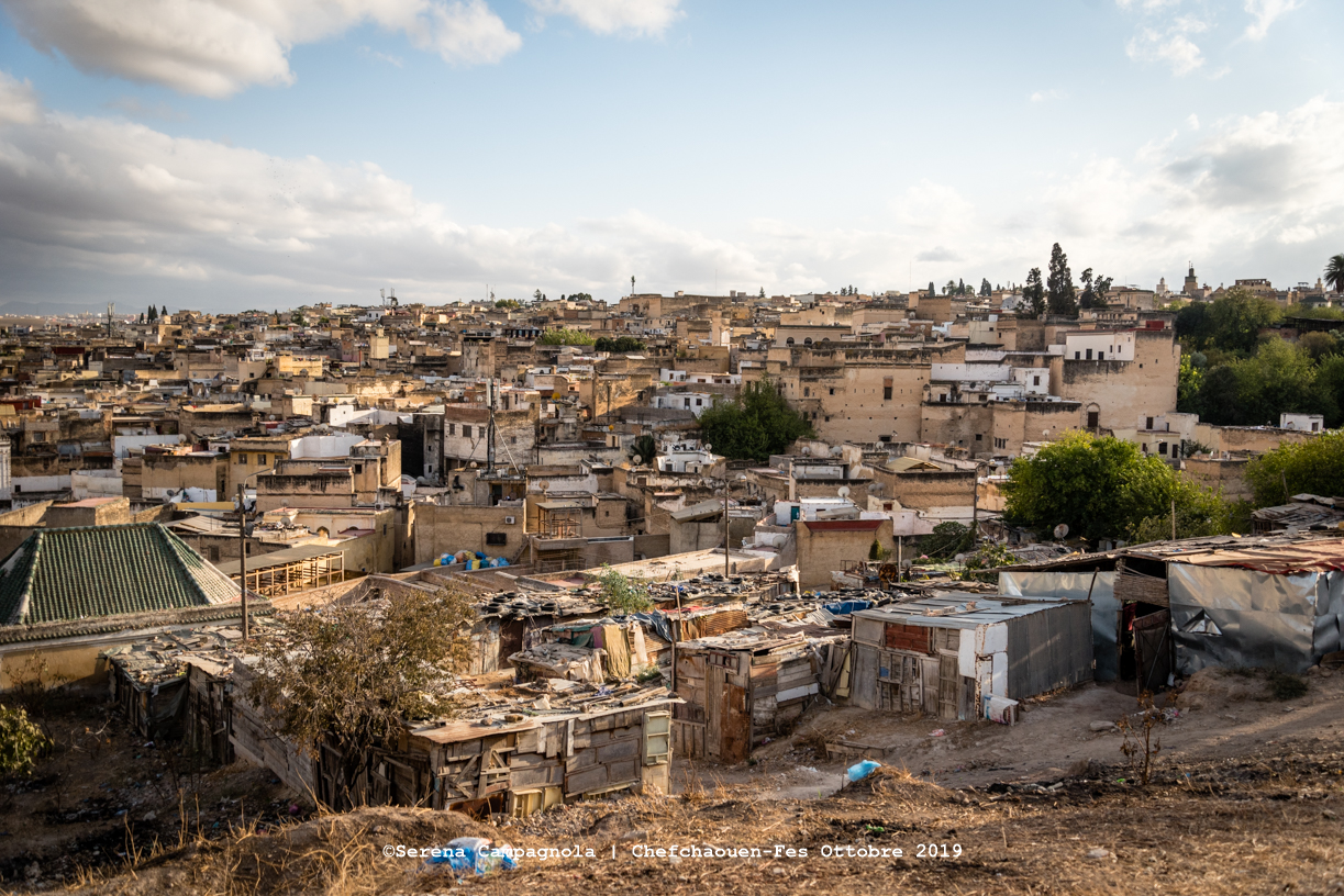 Il giorno successivo abbiamo richiesto tramite il Riad un taxi per le famose Concerie CURTUME Chouara e con sorpresa abbiamo ritrovato il nostro “amico” che ci aveva portate da Chauen a Fez. Prima di arrivare alle Concerie ci ha fatto fare una breve tappa per ammirare il paesaggio al Borj Nord.