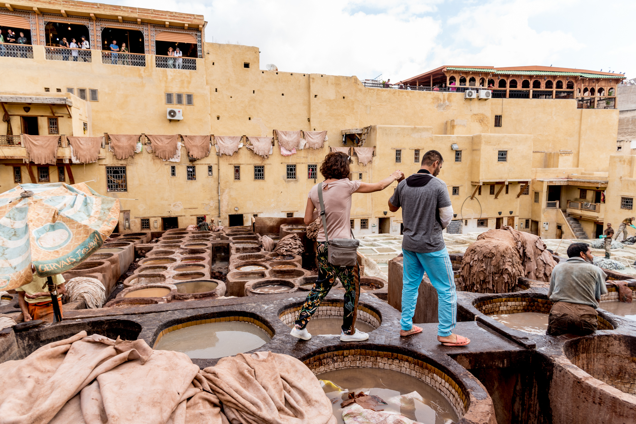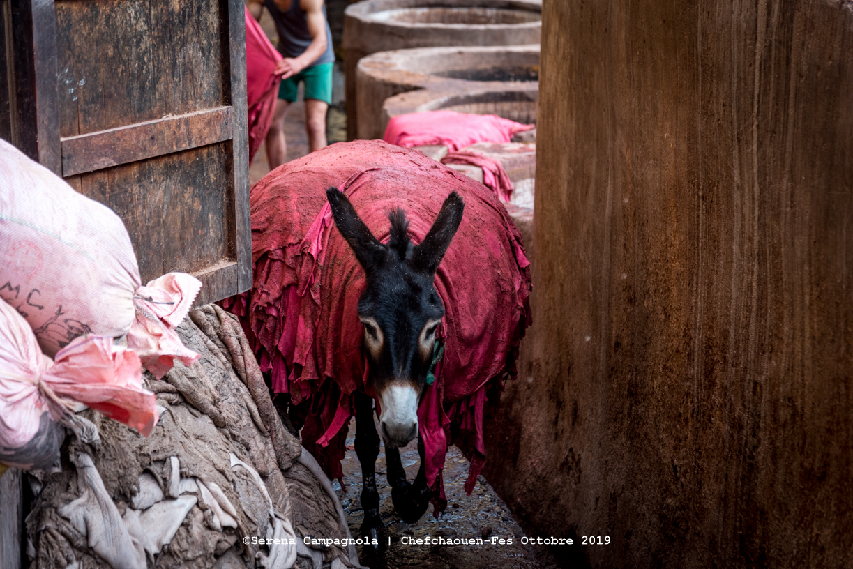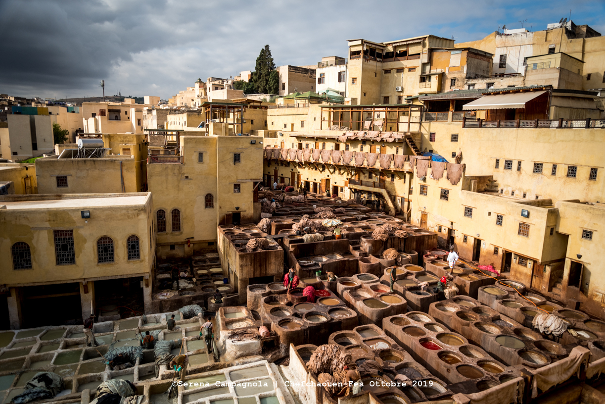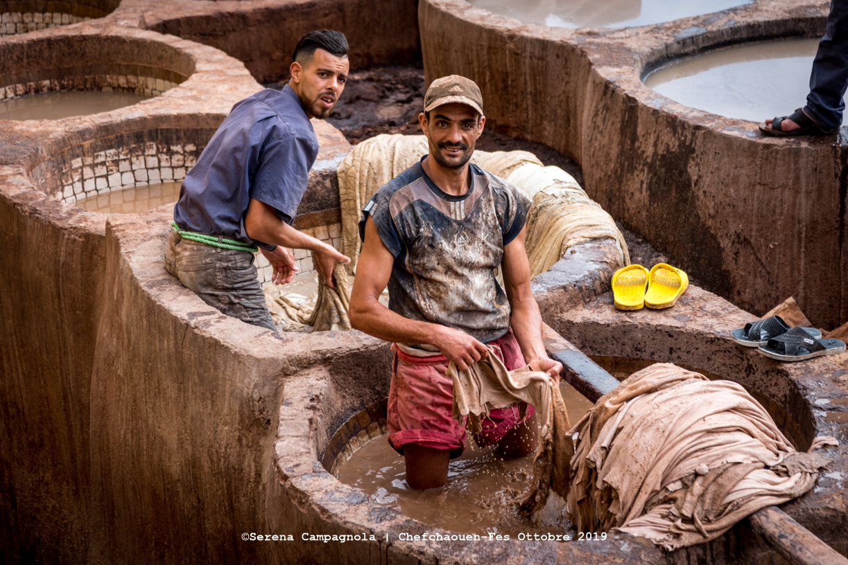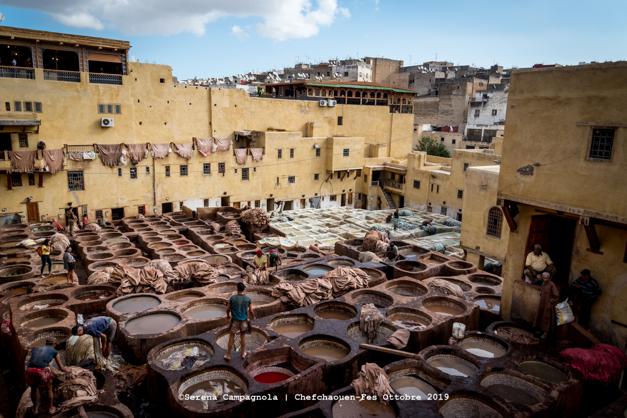 Anche se sono patrimonio nell’UNESCO, credo e temo che le concerie abbiano perso la loro importanza a livello di artigianato. Il quartiere è in ristrutturazione. Mi viene il dubbio anche se non ero mai stata a Fez che grande parte dell’attività sia stata trasferita altrove e che qui sia svolta solo una parte dell’attività a scopi turistici. Tante foto che girano sul web delle vasche tutte colorate secondo me sono molto vecchie. Attualmente i colori all’interno delle vasche sono bianco, rosso e nero e ho visto, solamente all’esterno, colorare di giallo le pelli, ma non nelle vasche.