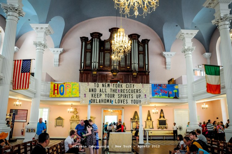 Dopo la Statua, siamo andati su Ellis Island a cui abbiamo dedicato un’oretta per poi tornare a camminare per Manhattan: Trinity Church, Wall Street ed edifici adiacenti, St. Paul’s Chapel (che merita una visita anche veloce, per iniziare ad entrare nello “spirito del ricordo”), World Trade Center che, davanti alle due enormi vasche, ci ha lasciati per un po’ senza parole. A me è mancato il fiato.