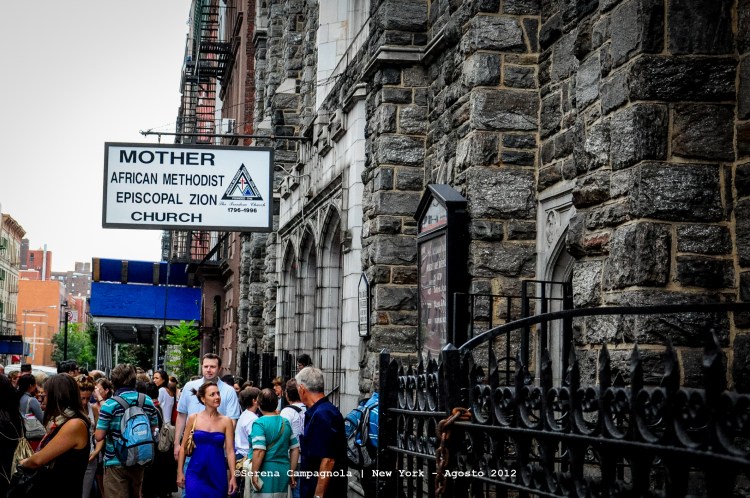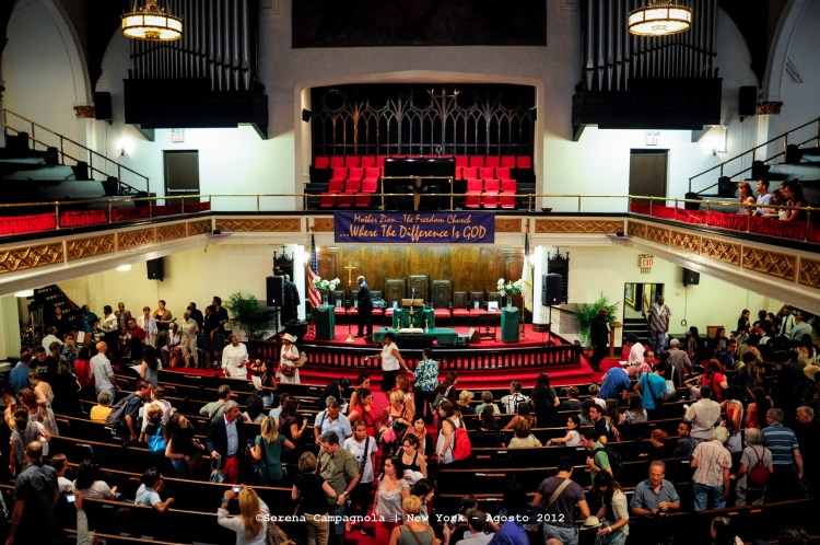 Siamo scesi dalla metro all’altezza della 135th in direzione Mother African Methodist Episcopal Zion Church. Siamo arrivati un po’ in ritardo (l’orario segnalato dalle mie guide non era corretto) e abbiamo assistito così solo la parte finale della funzione. È stata comunque che ricorderò e che sono felice di aver vissuto una.