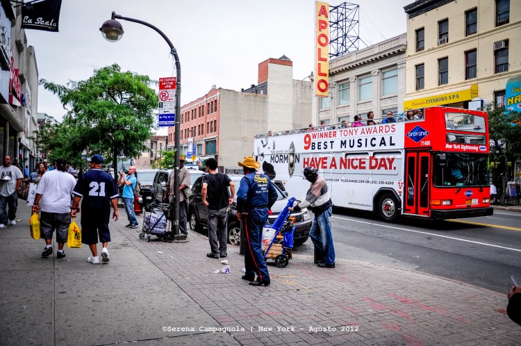 Finita la messa abbiamo fatto un giretto per Harlem percorrendo Malcom X e Lenox Ave in direzione sud, deviando per gli YMCA. L’idea era di fermarci a mangiare qualcosa da Sylvia’s o da Amy Ruth’s, in entrambi i locali c’era una coda incredibile, la prenotazione è d’obbligo! John ci aveva consigliato anche Red Rooster dove c’era ancora posto, ma alla fine abbiamo deciso di scendere verso Central Park, passando davanti all’Apollo Teatre (uno dei più famosi club musicali degli Stati Uniti ed il più noto al mondo per quanto riguarda gli spettacoli di musicisti afroamericani).