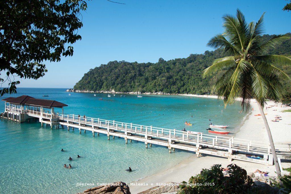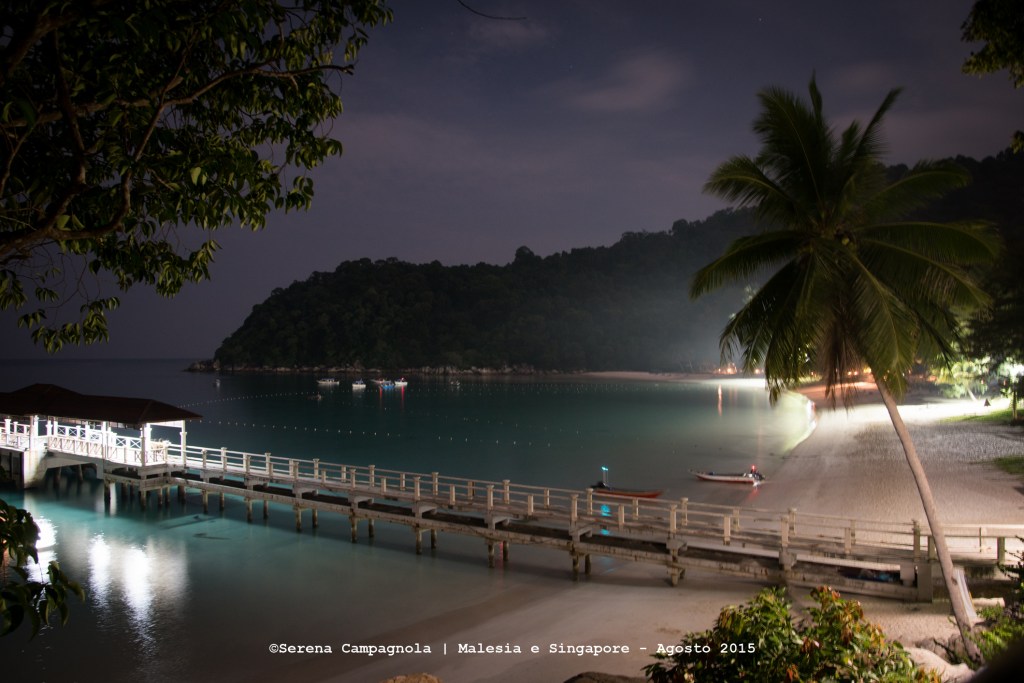 FACCIO UNA BREVE PARENTESI SULLA PIANIFICAZIONE DELLA PARTE RELATIVA AL MARE. Avevo una settimana a disposizione ed ho deciso di suddividerla tra Perhentian (3 notti) e Redang (4 notti). Tra Besar e Kecil (Perhentian) abbiamo optato per la prima perché più tranquilla e con le spiagge più belle. Per Redang ho scelto un posto “fuori dal mondo” per staccare da tutto e tutti. Arrivare a Besar non è stato difficile: avevo preso un tour di 2 notti che da Kuala Lumpur ci ha portati, passando dalle Cameron Highlands, sulla costa est a Kuala Besut dove abbiamo preso la barca per le Perhentian. Da Besar siamo andati direttamente in barca a Redang. Da Redang abbiamo preso la barca fino a Shahbandar Jetty e da lì pullman fino a Singapore. Il trasferimento in pullman è stato molto lungo, ma anche il volo lo sarebbe stato (dall’aeroporto TGG alle 13.10 ed arrivo a SIN alle 18.30 con scalo a KUL). Volevamo fare a tutti i costi anche Singapore e abbiamo optato per la soluzione più ecologica ed economica: il pullman.