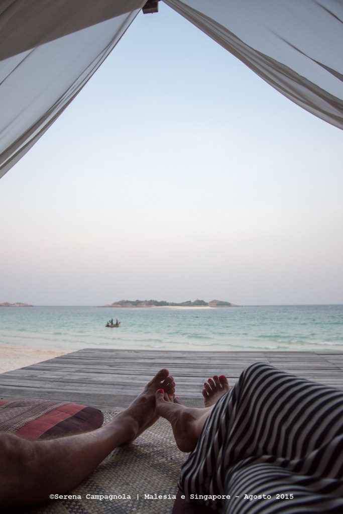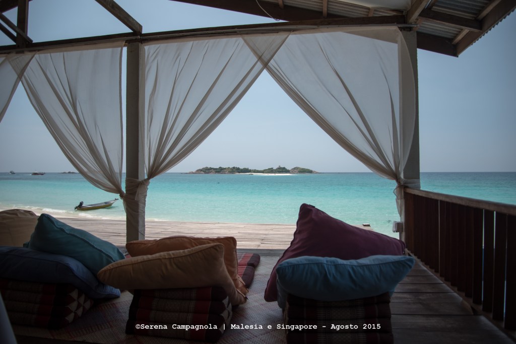 Scegliere dove dormire tra Perhentian Besar e Kecil per me è stato abbastanza semplice. Entrambe sono molto tranquille, ma Besar lo è ancora di più ed è ideale per famiglie o coppie. Inoltre, cosa per noi essenziale, ha spiagge più belle. Kecil offre un po’ più di vita serale, con falò e locali sulla spiaggia. In ogni caso le due isole sono una di fronte all’altra e ci si sposta facilmente con i taxi boat.