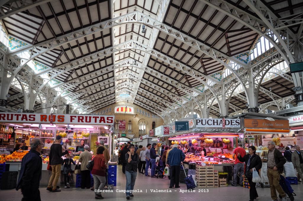 Il Mercato Centrale di Valencia. Di fronte all’edificio della Lonja sorge una struttura d’acciaio, con le vetrate colorate e le ceramiche dipinte a mano sulla facciata: è il Mercato centrale, con i suoi 959 banchi di prodotti freschi. Un intrecciarsi di colori, odori e sapori. Il Mercato è una delle tappe obbligate!
