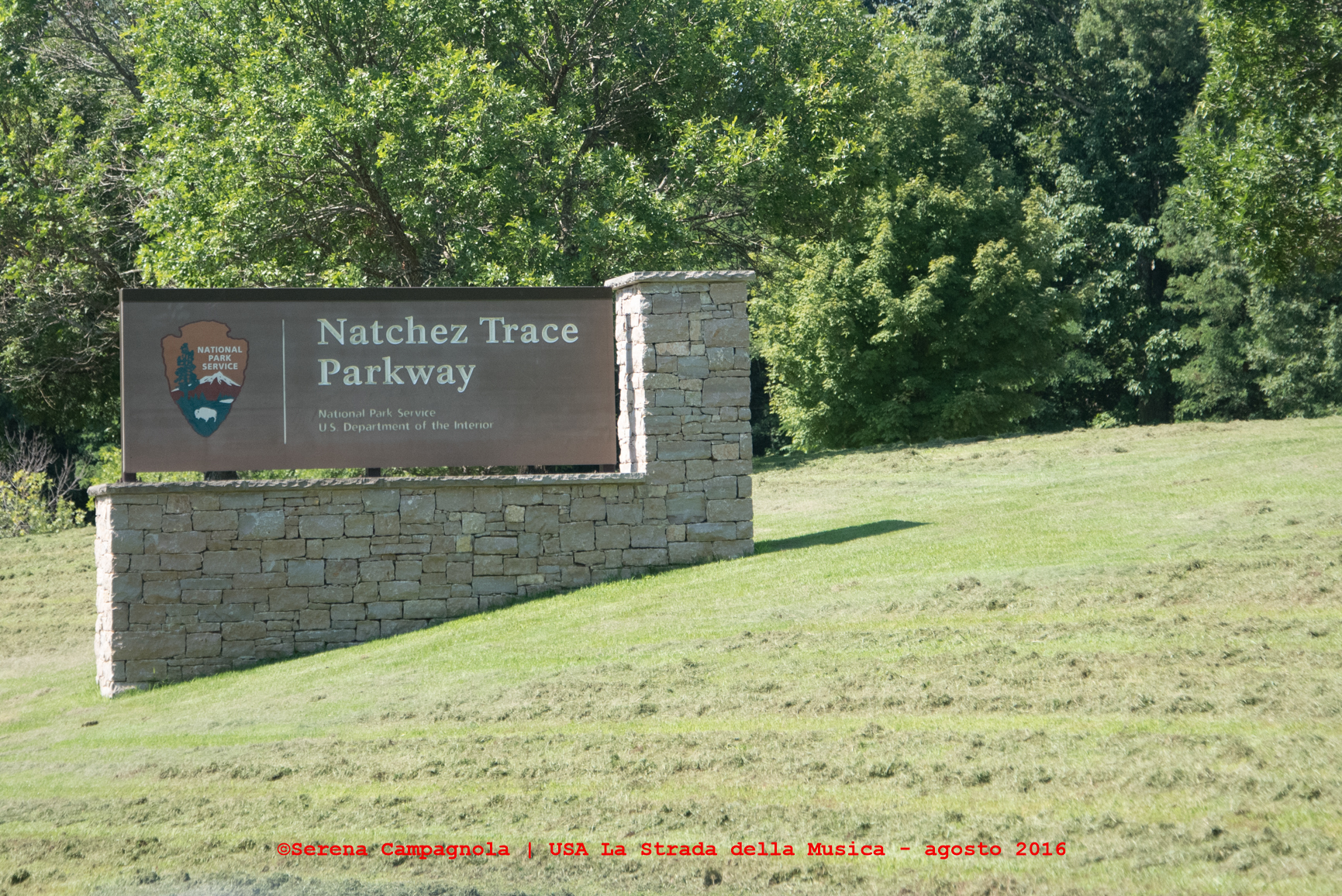 Ripartiamo prendendo la Natchez Trace Parkway, bellissima strada a due corsie per senso di marcia, in mezzo al verde, dove non ci sono né TIR nè semafori, ma il limite di velocità è di 40 mph. Si tratta di una strada panoramica di 643 km nel National Park Service che corre diagonalmente da Natchez (Mississippi) a Nashville (Tennessee) e segue un’antica pista tracciata più di 8.000 anni fa da bufali e cacciatori preistorici. Abbiamo percorso miglia e miglia senza incrociare auto e ammirando paesaggi stupendi!