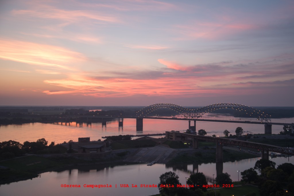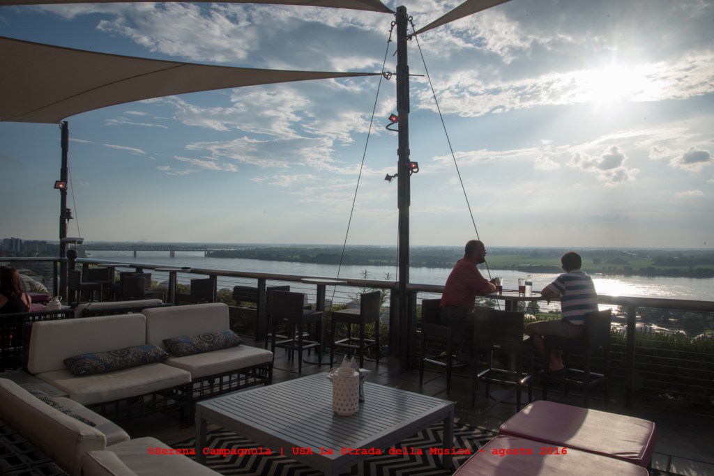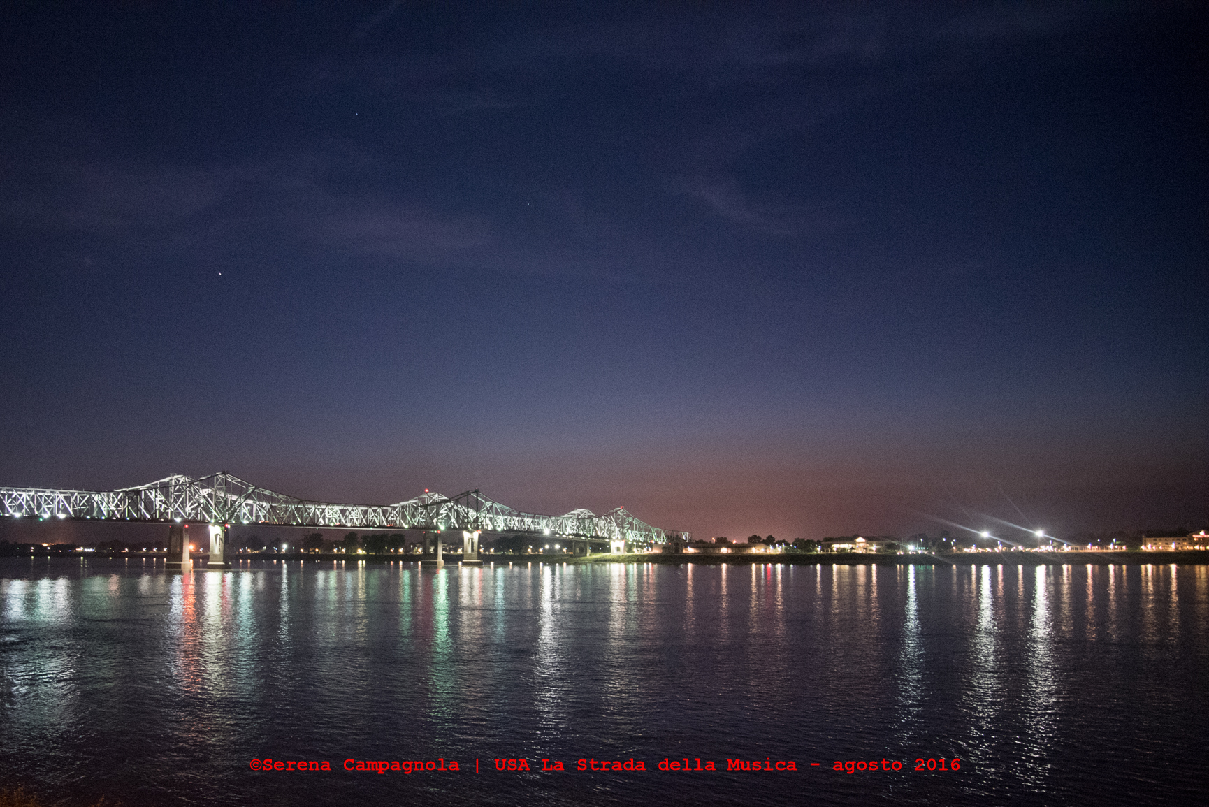 Uscendo ci siamo fermati un po’ ad ammirare lo scorcio sul Mississippi: le luci, i riflessi e finalmente un po’ di arietta piacevole…