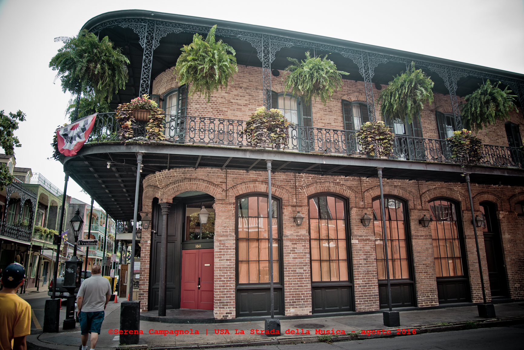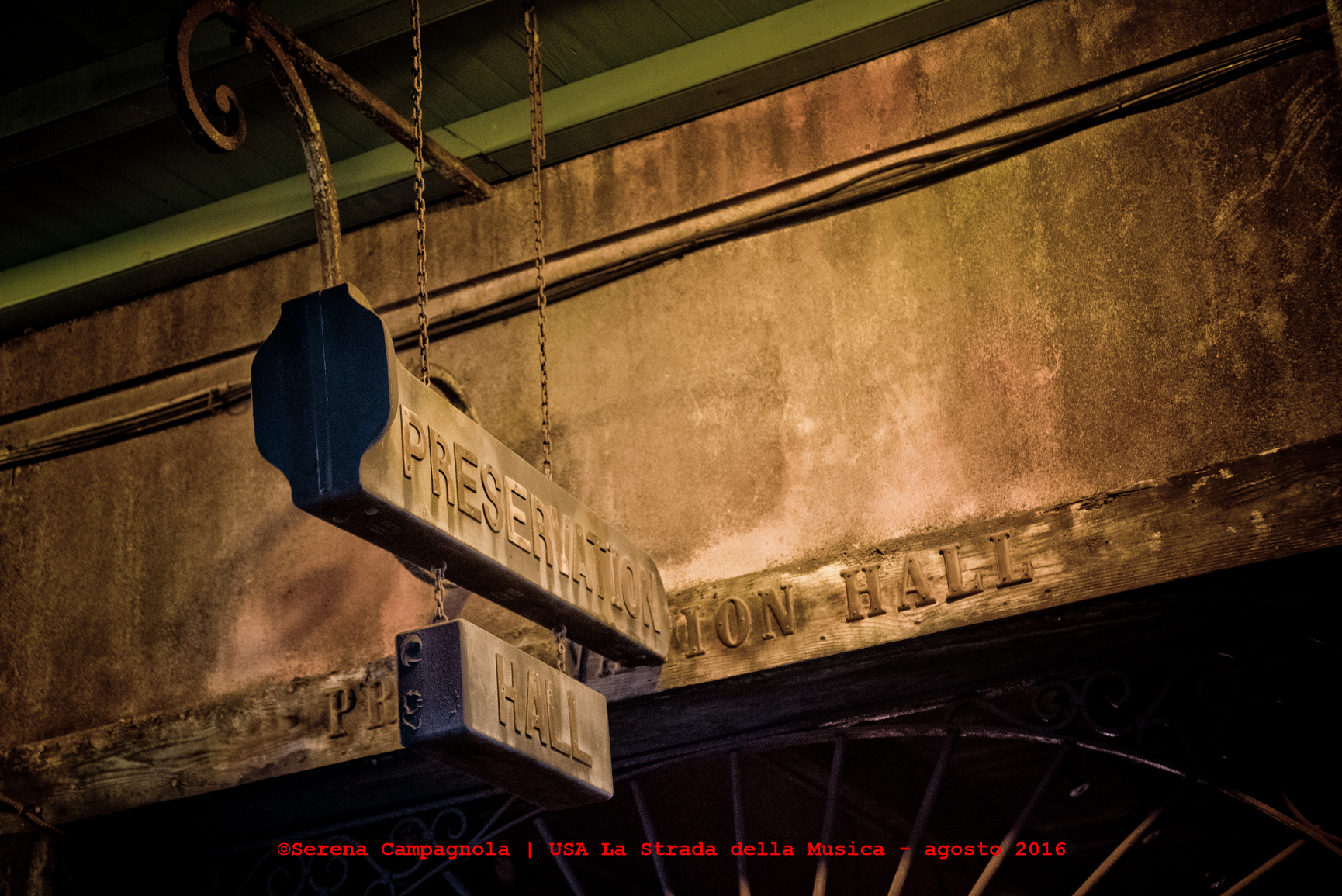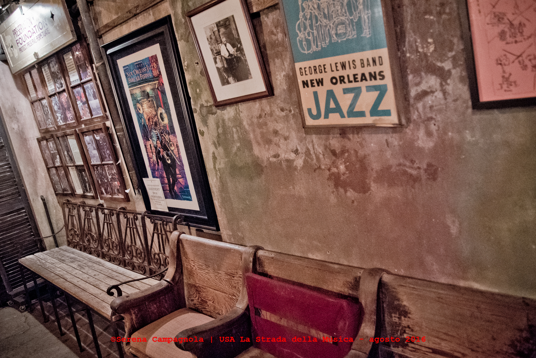 Dopo aver passeggiato su Bourbon Street, ci siamo messi in coda per l’ultimo spettacolo a Preservation Hall (entrata $15 a testa all’interno non vedono da bere). Mentre eravamo in coda, sentivamo dalle finestre l’entusiasmo della gente che assisteva allo spettacolo in corso. Lo stabile che ospita la Preservation Hall è del 1750, la location è davvero autentica ma allo stesso tempo essenziale: curatissima con foto alle pareti che testimoniano la storia della jazz-music, ma con panchette minuscole per gli spettatori. Lo stabile si “riempie” della musica dei gruppi jazz che si esibiscono.