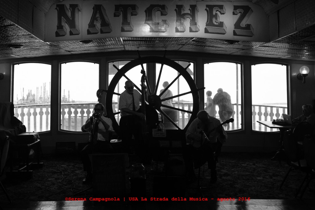 Lasciata la camera, siamo andati verso Jackson Square per prenotare la gita sulla Natchez Steamboat, optando per quella delle 11.30 con il pranzo ($42/cad). Con il caldo che c’era non potevamo scegliere di meglio. Abbiamo trascorso delle ore molto piacevoli sul battello, respirando una splendida atmosfera, pranzando a ritmo di jazz (suonato dal vivo)! Forse l’uscita al tramonto è più d’effetto, ma disponendo di una sola serata a New Orleans, ho dovuto scegliere!