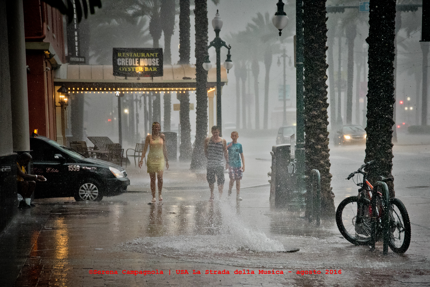 Finita la gita, siamo tornati nel quartiere francese, per qualche acquisto “dell’ultimo momento”. A metà pomeriggio, improvvisamente, il cielo è diventato nerissimo e ha iniziato a diluviare. Successivamente abbiamo letto del tornado che si è abbattuto a NOLA… Ce lo siamo beccato in pieno. Canal Street era un torrente!