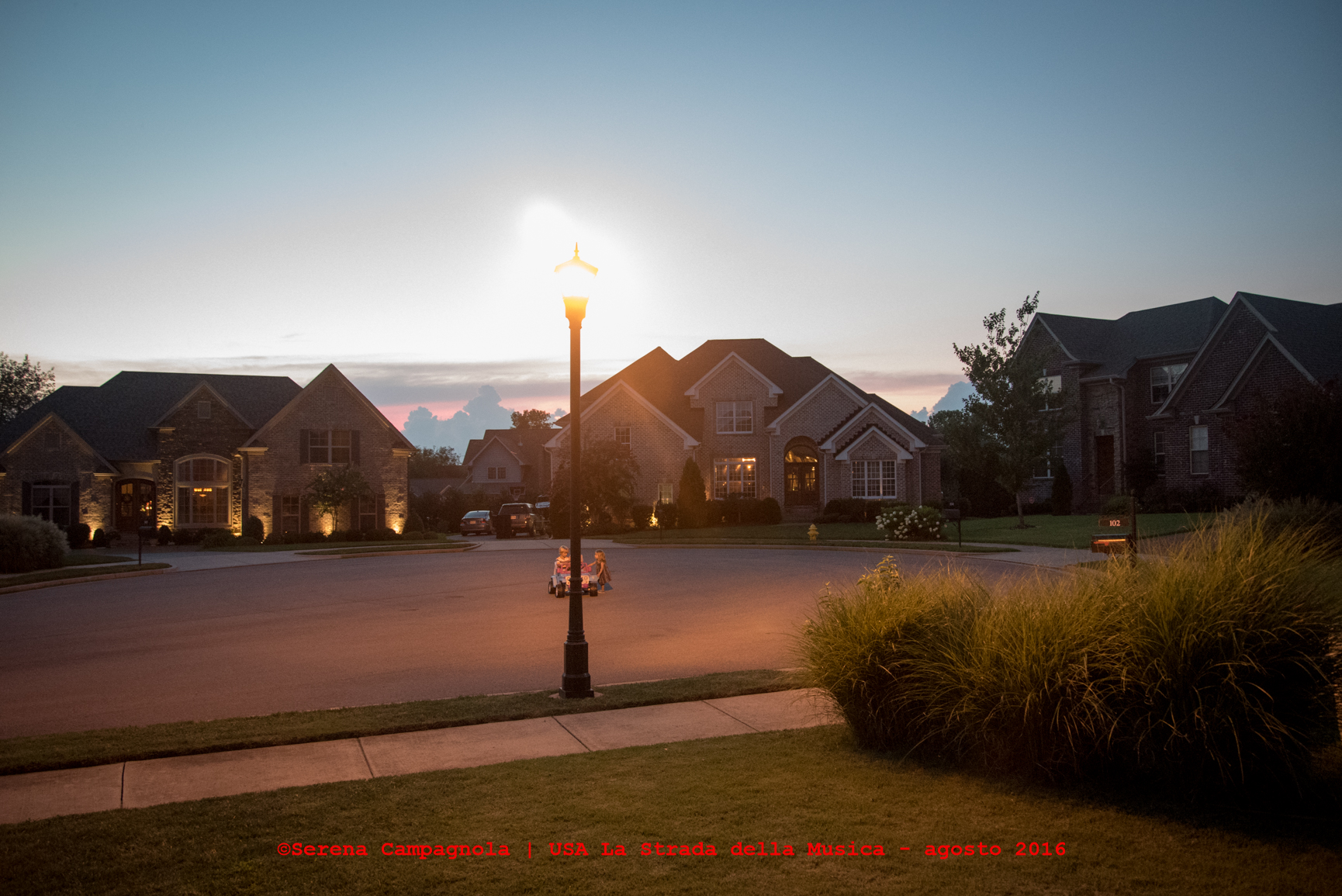 Per cena avevamo appuntamento da una coppia di amici compaesani (Stefania e Alessandro) a Hendersonville distante circa 20 minuti di macchina. Ci è sembrato di entrare nella scenografia di “The Truman Show” in cui tutto è perfetto: prati verdi e tagliati a puntino, case simili e dello stesso colore, con gli stessi materiali, le cassette della posta, tutto pulito, il laghetto artificiale, le scuole… Cena da leccarsi i baffi, in una casa stupenda con una cuoca superlativa e in piacevolissima compagnia. Stefania la conosco da quando siamo piccole e si è trasferita con famiglia da qualche anno per via del lavoro di Alessandro. Appassionata di fornelli e cucina, ha deciso di dare una svolta professionale alla sua passione, esportando la nostra cultura culinaria nel Tennessee e aprendo un’attività Pasta & CO. Authentic Italian Food in Hendersonville.