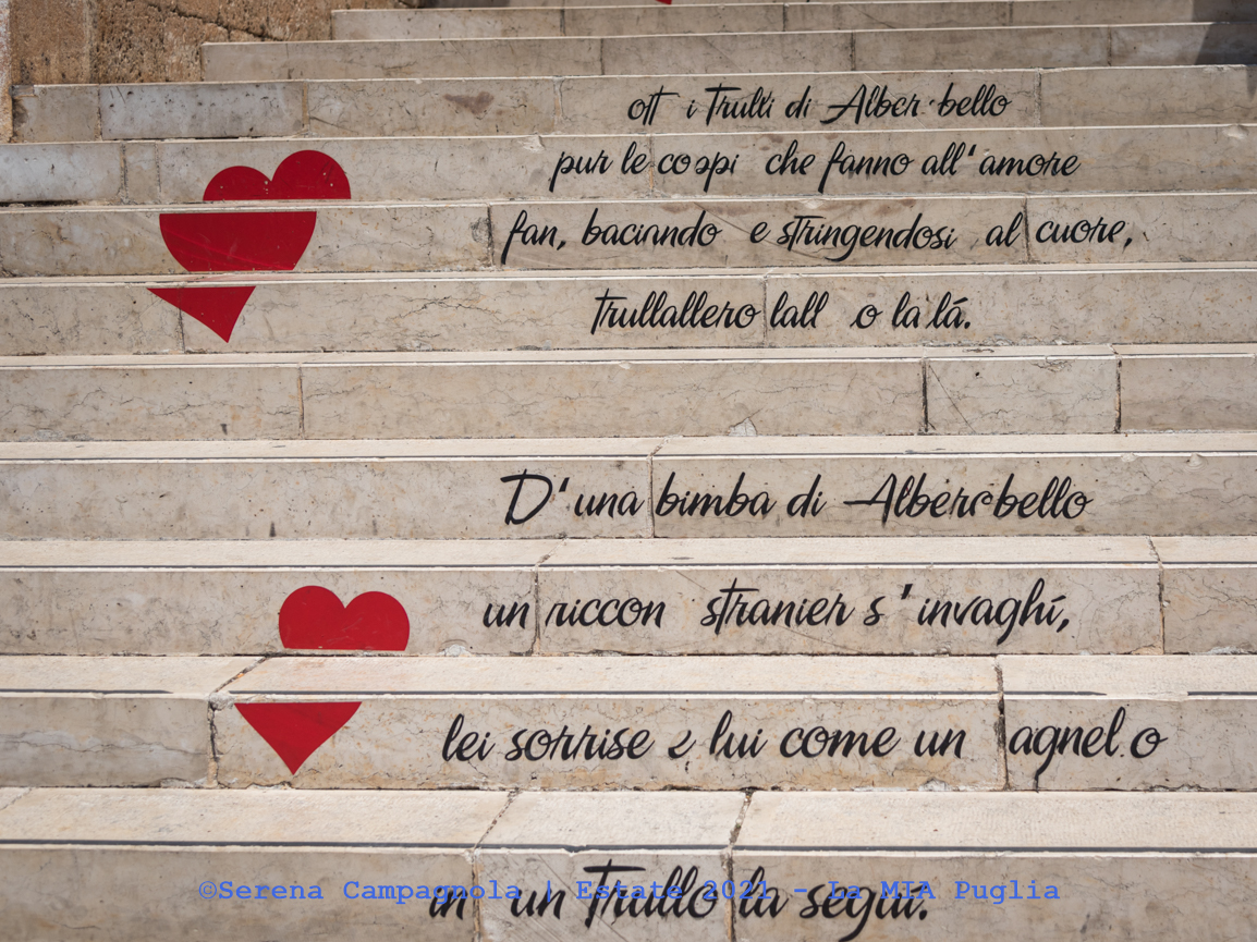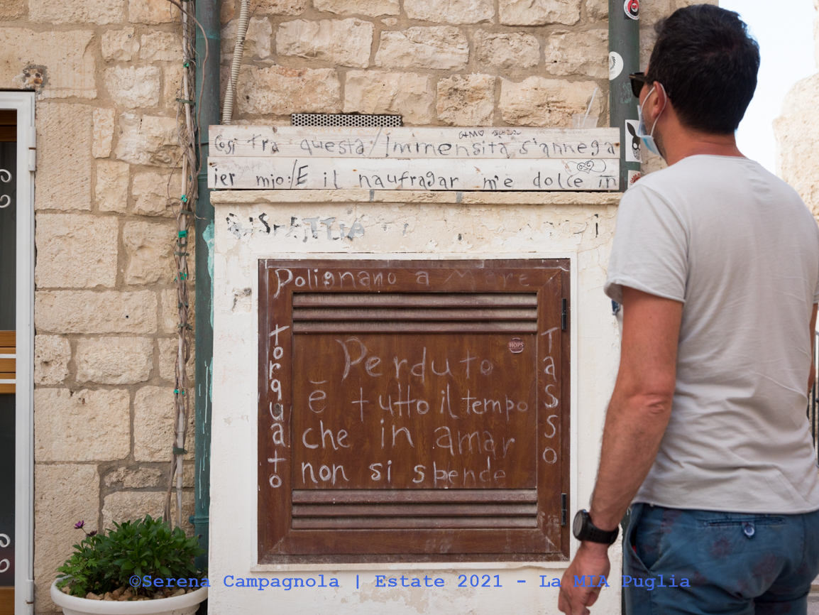 Amate trovare messaggi tra gli scorci incantati? Il centro storico di Polignano vi farà perdere la testa! La poesia e la musica sono ovunque: sulle scale, sulle porte, sulle facciate delle abitazioni, ma anche nell’atmosfera.