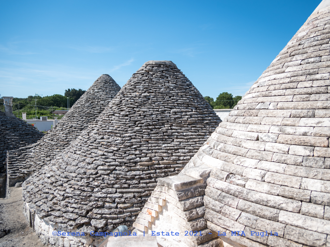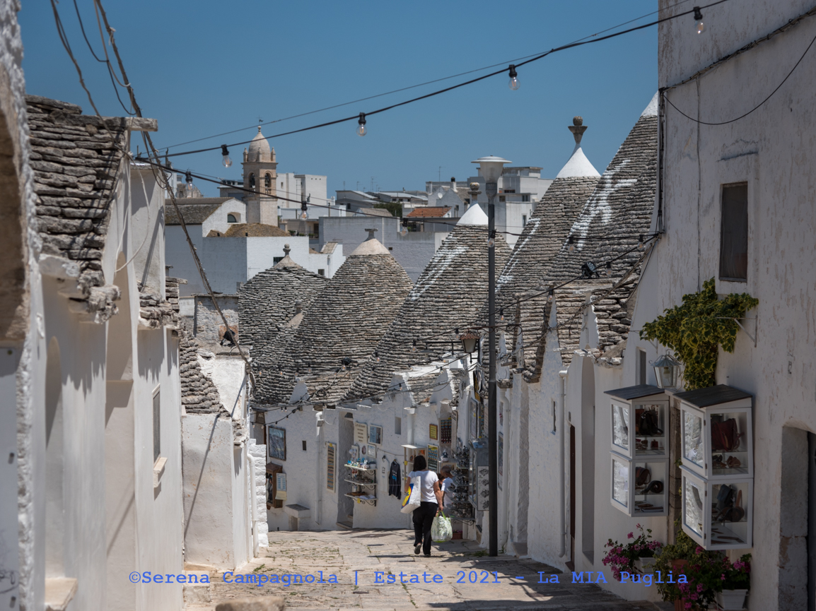 Camminate per il Rione Monti, composto da ben 1030 trulli. Questi sono allineati lungo i margini di otto stradine irregolari che procedono verso la sommità del colle, sulla cima del quale spicca la chiesa di Sant’Antonio da Padova, anch’essa a forma di trullo.