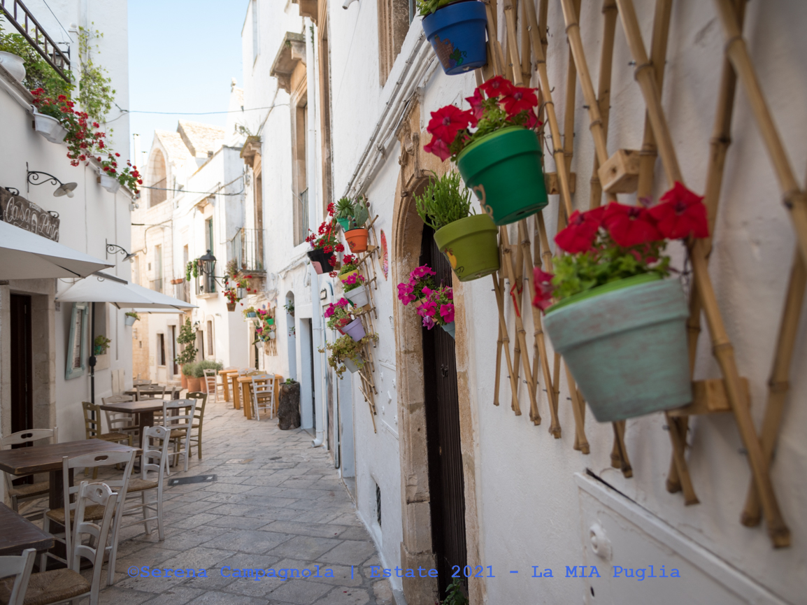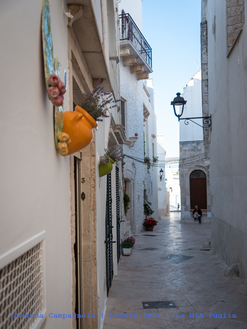La bellezza di Ostuni sta tra i suoi vicoli: un saliscendi nel bianco candido con porticine e finestre delle case della tonalità dell’azzurro e del verde che contrastano con la purezza dei muri. Le piante e i fiori ornano i vicoli e tutto sembra messo lì apposta per sorprendere l’occhio del visitatore.