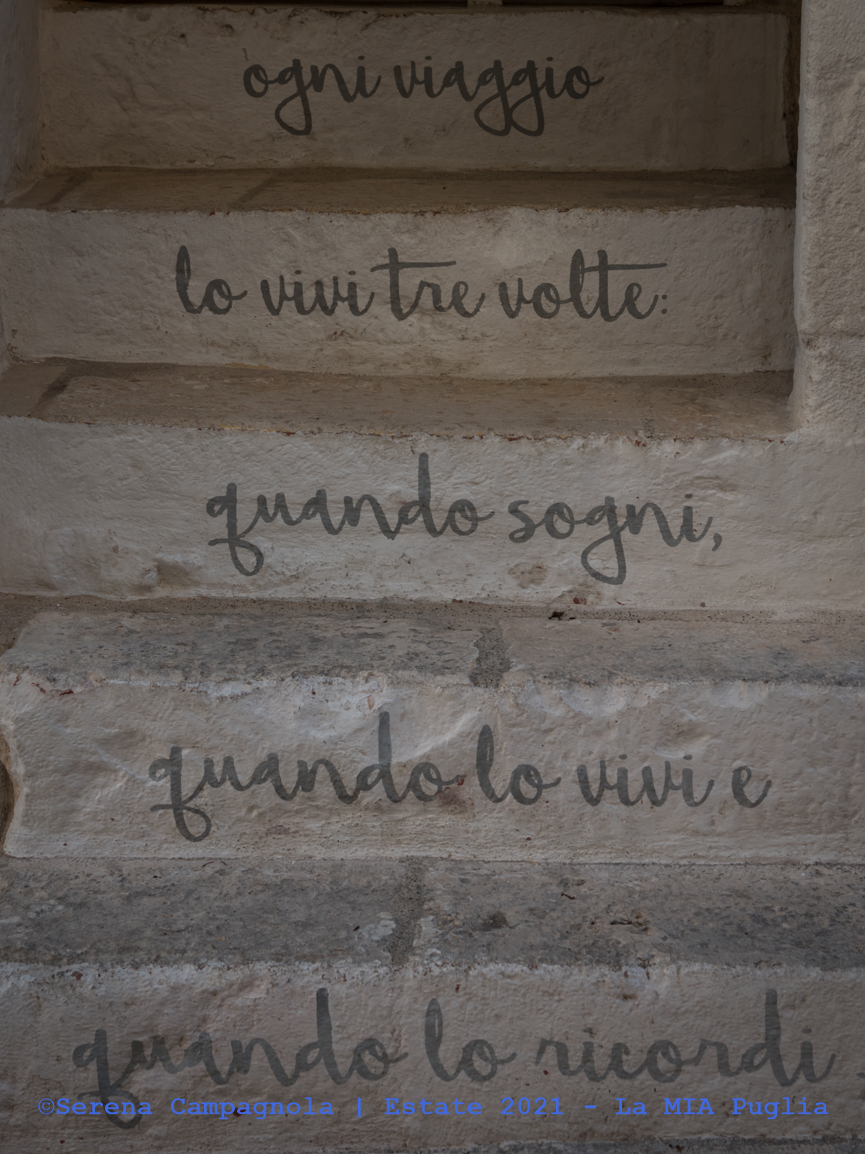 La Puglia mi è rimasta nel cuore: i paesaggi, la campagna, il mare, i paesi, il cibo, ma soprattutto la gente. L’accoglienza pugliese ci rimarrà nel cuore e nella mente!