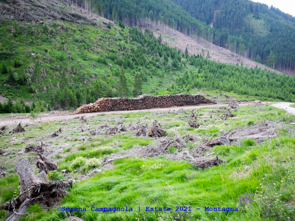 La montagna di legname ancora accatastata dopo 3 anni, da l’idea dell’immensità del danno.