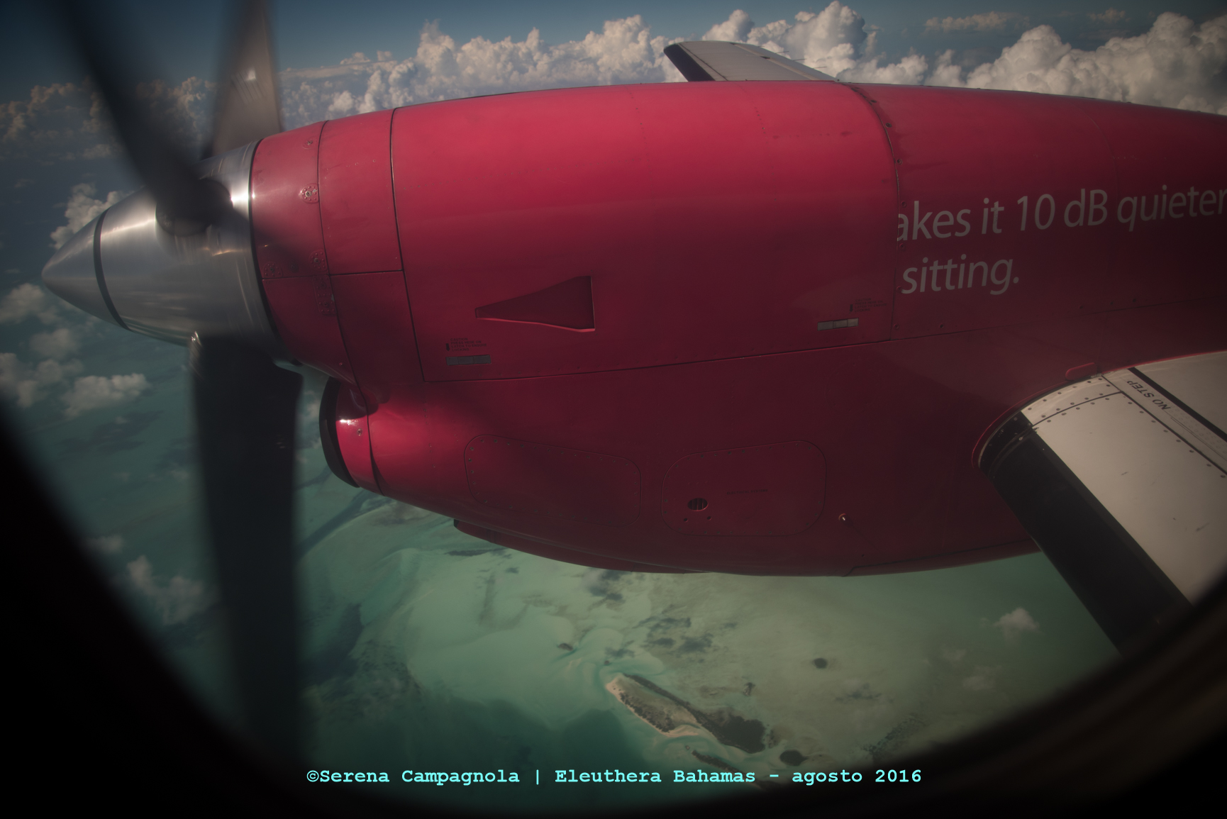 Abbiamo raggiunto Eleuthera volando da Fort Lauderdale con Silver Airlines. Il volo di andata e ritorno per Eleuthera ci è costato € 450 a testa con assicurazione annullamento e bagagli in stiva. Il tragitto è molto suggestivo perché volando a bassa quota si gode di una bellissima vista sulle Bahamas. Lo spettacolo sottostante ci ha riportati con i ricordi al 2012 quando siamo stati ad Exuma (diario di viaggio che vi ho già raccontato qui).