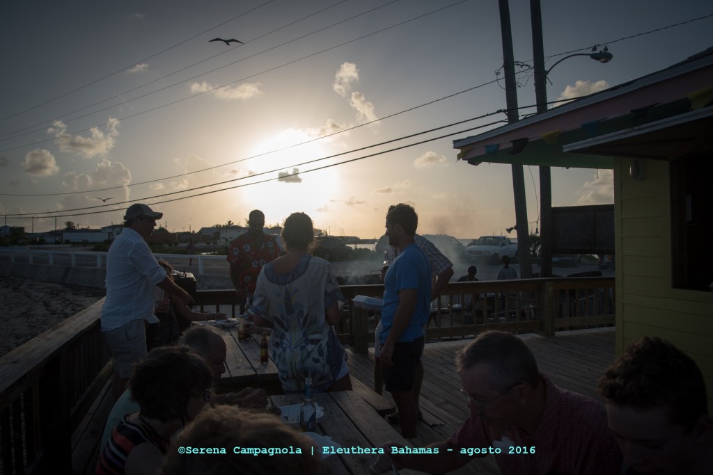 Per l’ora aperitivo siamo andati in “centro” a Governor’s Harbour all’Anchor Bay per il Friday Fish Fry. Tutti i venerdì dalle 19.00 alle 24.00, sulla spiaggia, persone del posto organizzano una grigliata di pollo e pesce. Un DJ sulla strada spara musica caraibica a tutto volume!