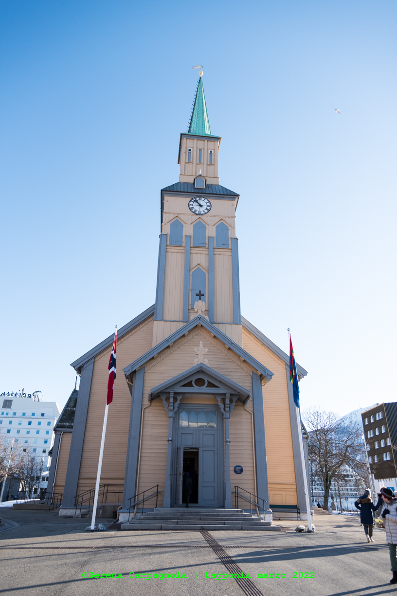 Dopo una veloce visita guidata del centro, siamo partiti a piedi verso la Cattedrale dell’Artico attraversando il Bruvegen Bridge. Abbiamo deciso di non entrare, ci siamo limitati ad ammirare lo splendido panorama e qualche famiglia locale che usciva dalla Cattedrale.