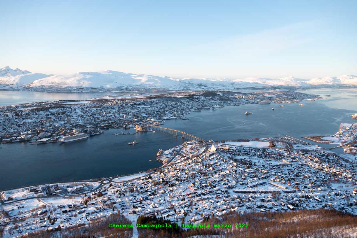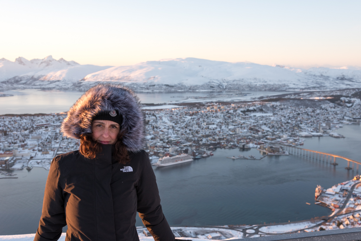 Dopo il pranzo, verso le 15.45-16 abbiamo preso il bus 26 per raggiungere la partenza della funivia. Saliti sul Monte Storsteinen abbiamo goduto della vista panoramica su Tromsø e sui fiordi, al tramonto, con le luci della città, pronti per ammirare la nostra prima Aurora Boreale. Emozione indescrivibile, eccitazione a 1000!