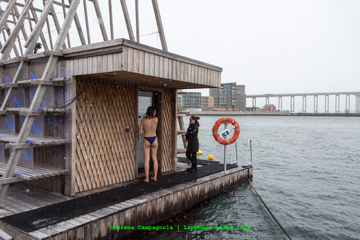 Appena usciti ci siamo avvicinati alla piattaforma presente nel porto turistico che permette di prenotare, sauna, bagno nel mare e spogliatoi.