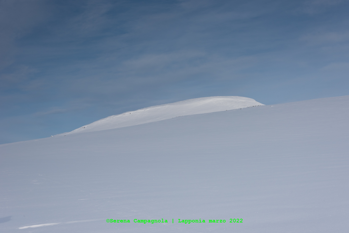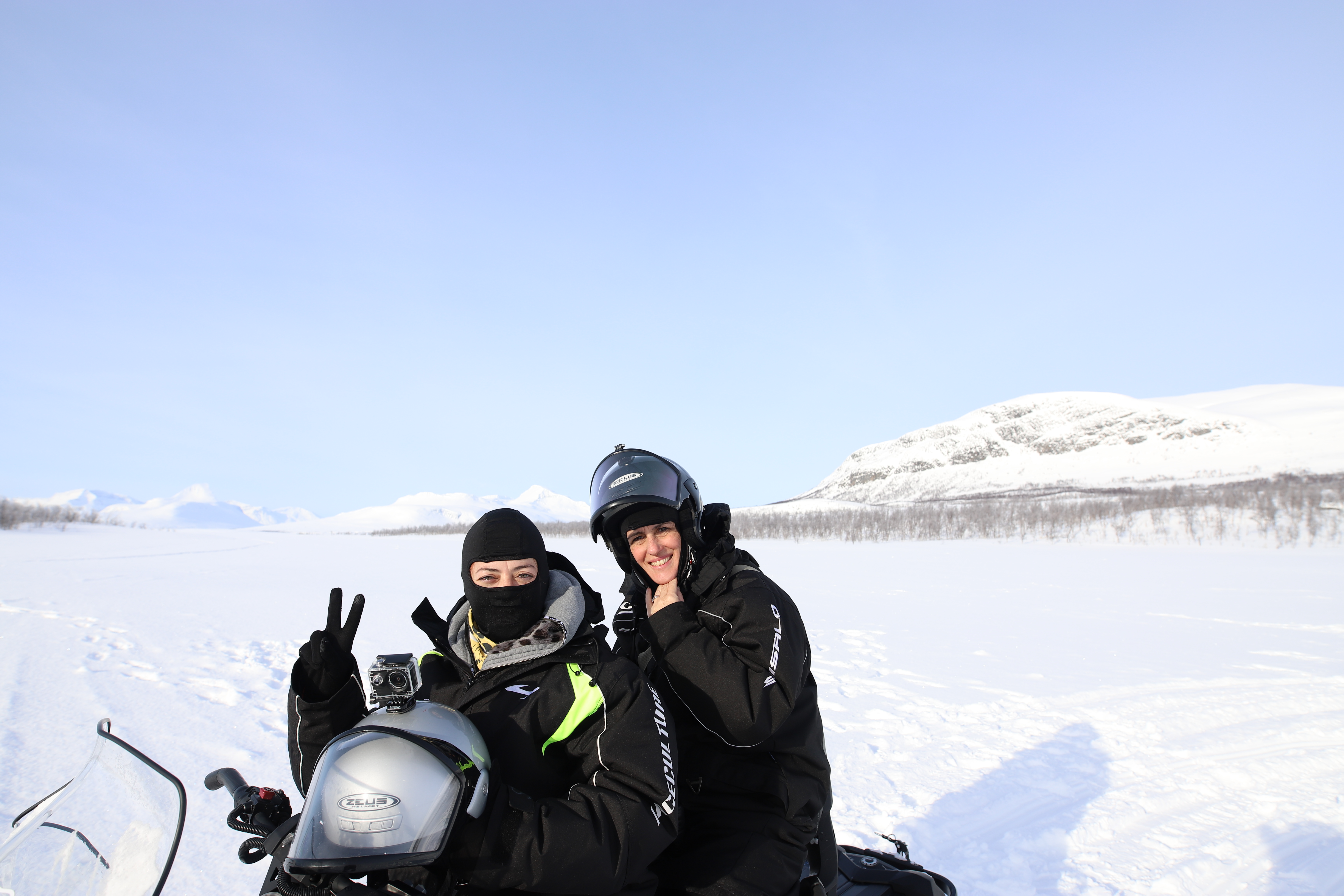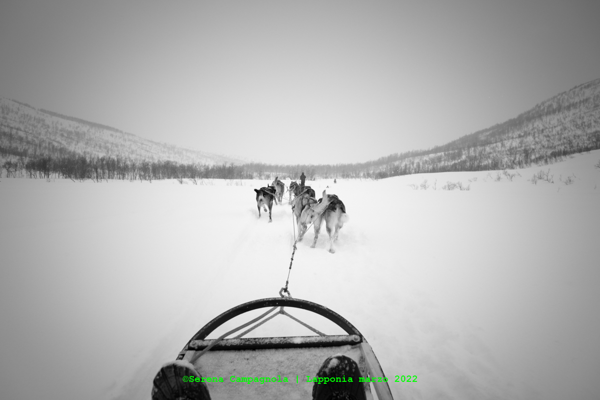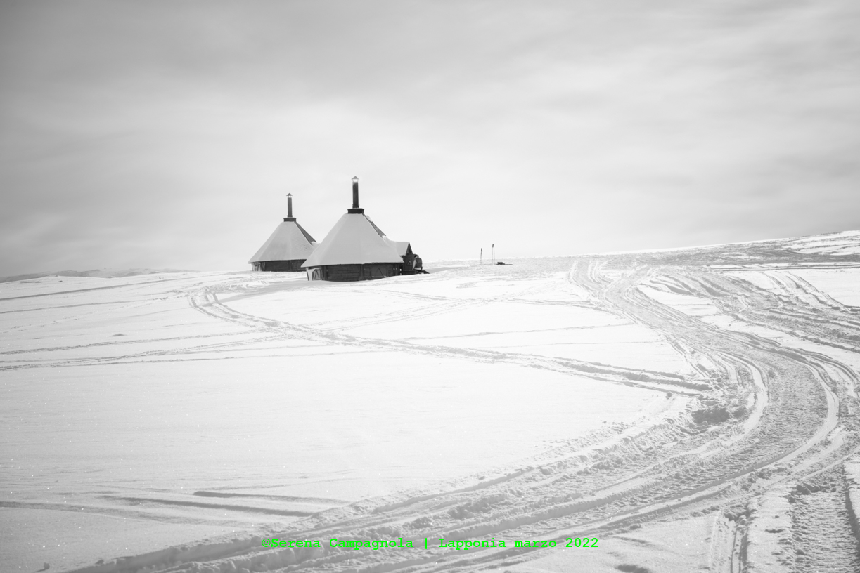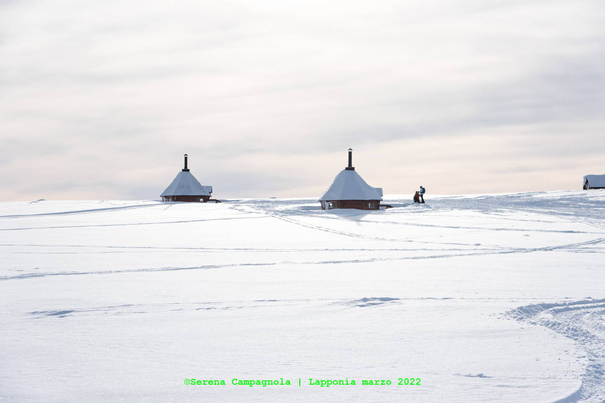 Abbiamo iniziato con la gita con motoslitta verso Three-Country Cairn, il punto dove si uniscono le tre Lapponie: Norvegese, Svedese e Finlandese. Il percorso è incantevole, bianco candido a perdita d’occhio. Sembra un paesaggio lunare…