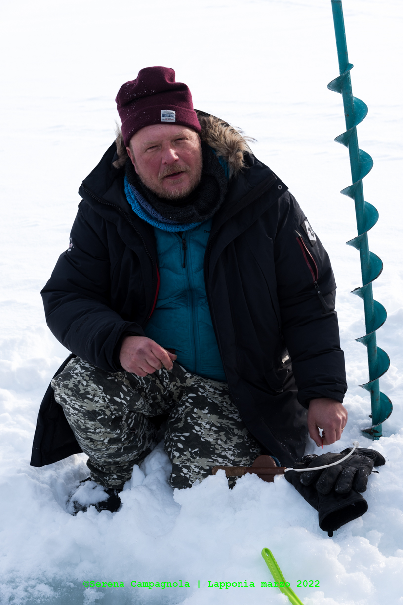Il giorno successivo siamo andati più o meno nello stesso punto per provare la pesca sul ghiaccio e per la nostra prima ciaspolata lappone.