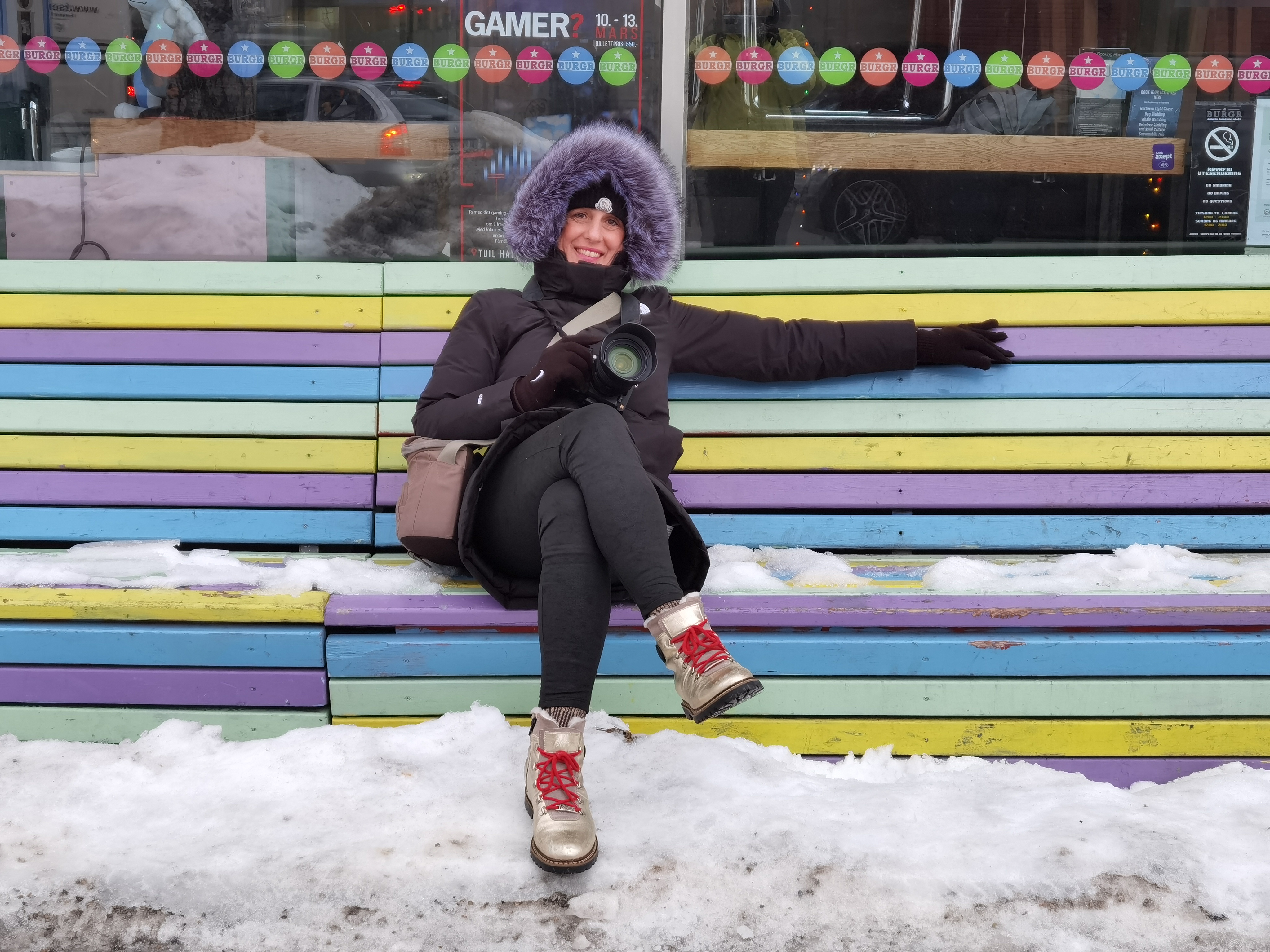 Sono partita abbastanza leggera con la mia tracolla Manfrotto Bella all’interno della quale ho posizionato, anzi ho “incastrato”, la mia reflex Nikon D750 con il 24-120 Nikon montato (utilizzato durante il giorno) e il 15-30 2.8 Tamron (utilizzato per l’aurora). Per paura di rimanere senza batteria tra freddo e lunghe esposizioni ho portato in totale 3 batterie. Per fotografare l’aurora avevo comprato il telecomando intervallometro scatto remoto. Peccato che mi sono accorta che aveva l’attacco sbagliato solo quando dovevo utilizzarlo, così ho impostato la reflex con la funzione di scatto ritardato (giudicherete voi le foto!). Nel bagaglio da stiva ho messo il treppiedi, fondamentale per fotografare l’aurora boreale, e la torcia da mettere in testa. Inoltre ho portato la GoPro Hero8 black con asta e i suoi accessori per il casco. Sempre per paura di rimanere con il cellulare scarico ho portato una power bank.