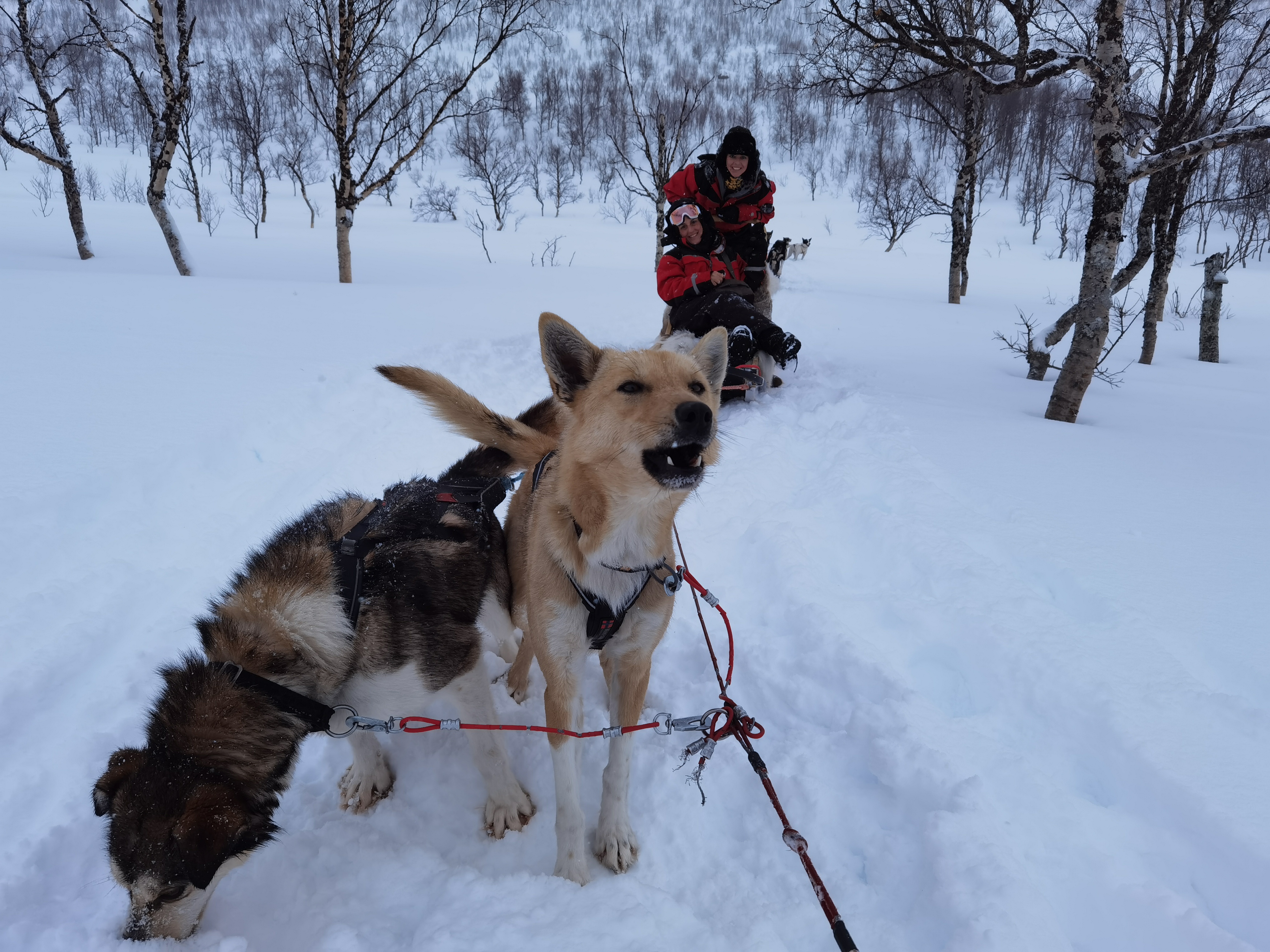 Dopo 1 ora e mezza circa di pullman, sotto una bufera di neve, siamo arrivati al Camp Tamok (Øverbygd Norvegia) per l’escursione con cani da slitta organizzata da Lyngsfjord Adventure.