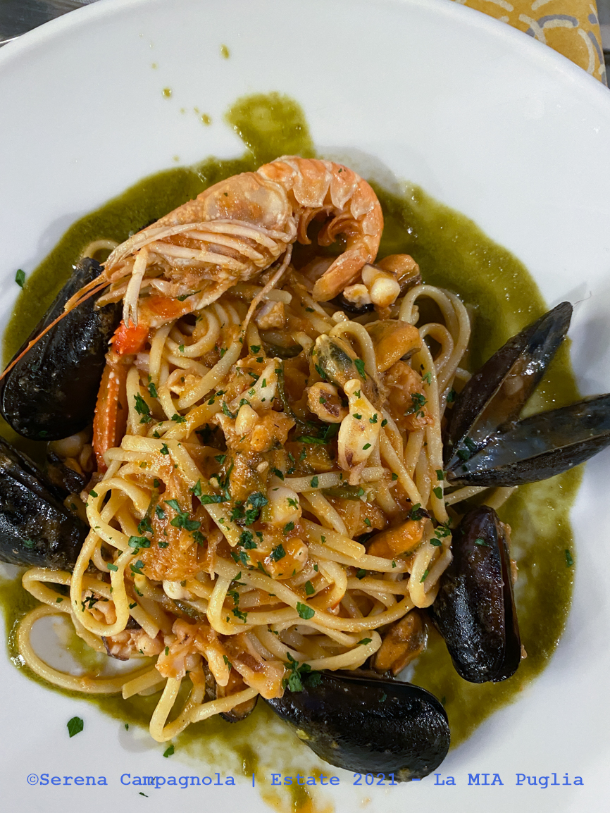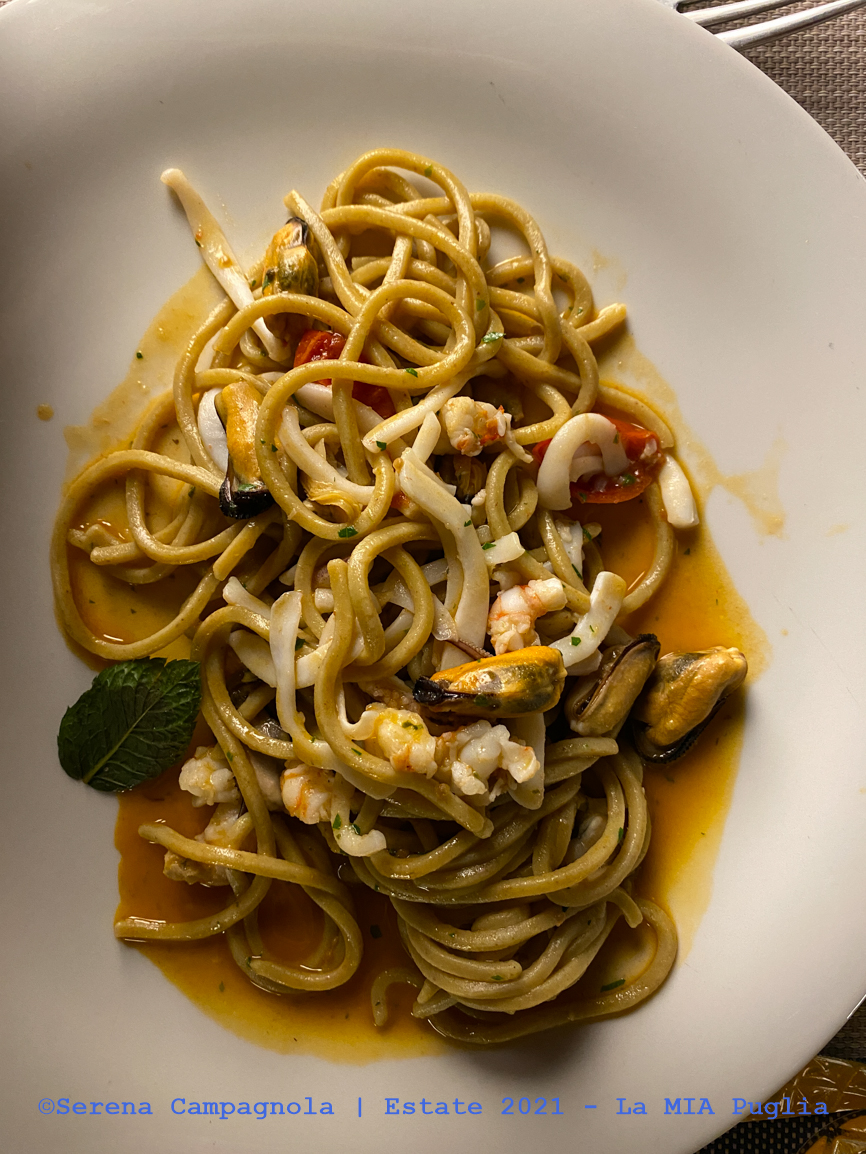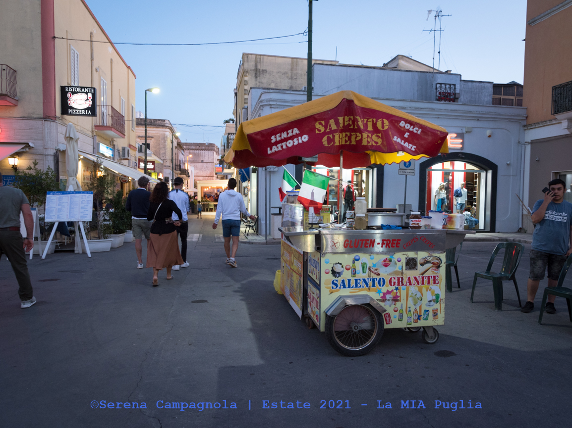 A cena siamo andati da Agatha. Il posto è molto carino, in pieno centro con tavoli all’aperto. Il servizio è veloce, il cibo buono, ma sinceramente abbiamo trovato di meglio a Gallipoli. Comunque abbiamo preso un’acqua, due birre, una scottata di tonno e due orecchiette al polpo, spendendo € 40,00. Purtroppo le orecchiette avevano qualcosa di speziato, nonostante la mia esplicita richiesta a tal riguardo. Ne ho mangiate un po’ ma poi rendendomi conto del problema, non ho potuto finire il piatto…