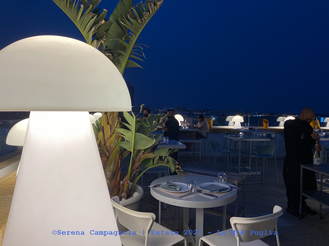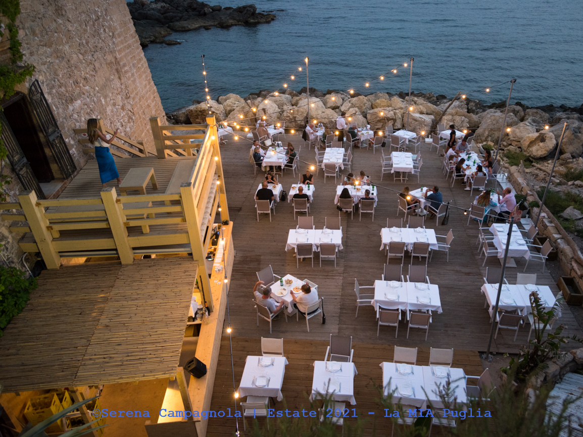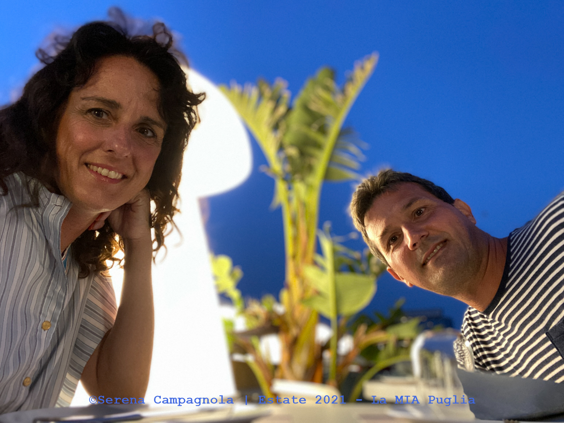 Per cena siamo andati da Yellow Scapece (Martinucci), ristorante super consigliato da Mario. Era la nostra ultima cena pugliese e probabilmente, ad averlo provato prima, saremmo tornati. Servizio di qualità. Terrazza all’aperto arredata con gusto e con una bellissima vista. Nell’insieme regala un’atmosfera molto suggestiva e romantica. E’ stata una cena molto curata. Abbiamo mangiato divinamente. Abbiamo speso € 70,00 in due per un antipasto di mare, un piatto di rettangoli di cernia, uno di bigoli ai frutti di mare, acqua, 4 birre e ci hanno offerto i due caffè.