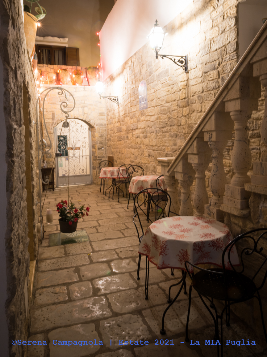 Per cena siamo usciti dal “pieno centro” e siamo andati all’Osteria Le Volte, che consiglio assolutamente. In 5 abbiamo preso: 3 antipasti, 4 primi, una tagliata, un piatto di fave e cicorie, due birre, due acque, tre caffè, un bicchiere di vino, una coca-cola. Abbiamo speso € 95,00. L’antipasto ricco e veramente eccezionale, i primi abbondanti e ben cucinati, abbiamo mangiato dei buonissimi piatti della cucina “della terra” pugliese. Hanno dei tavoli all’esterno su una pedana al lato del marciapiede. Il servizio veloce, il personale è gentilissimo e premuroso. E’ stata l’unica cena nel Salento durante la quale non abbiamo mangiato pesce, ma abbiamo assaporato i sapori della terra pugliese. Veramente un’ottima cena a prezzi molto contenuti.