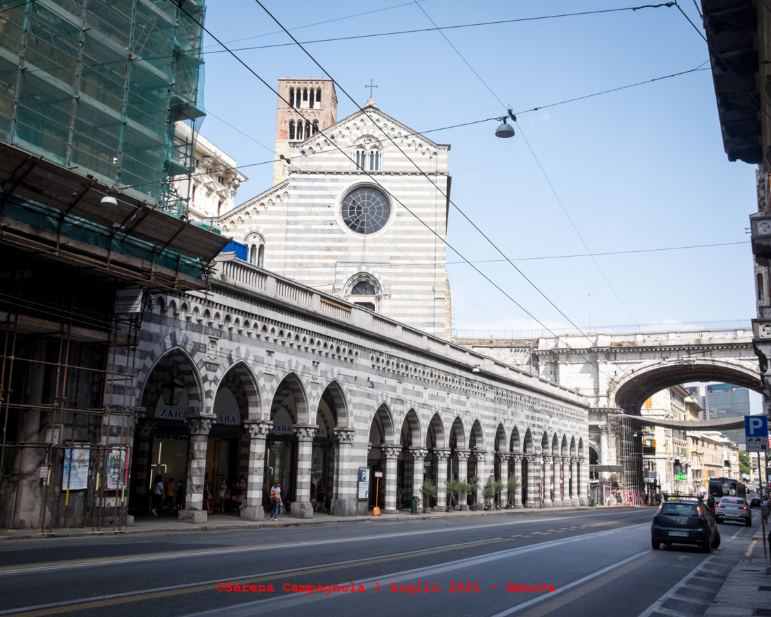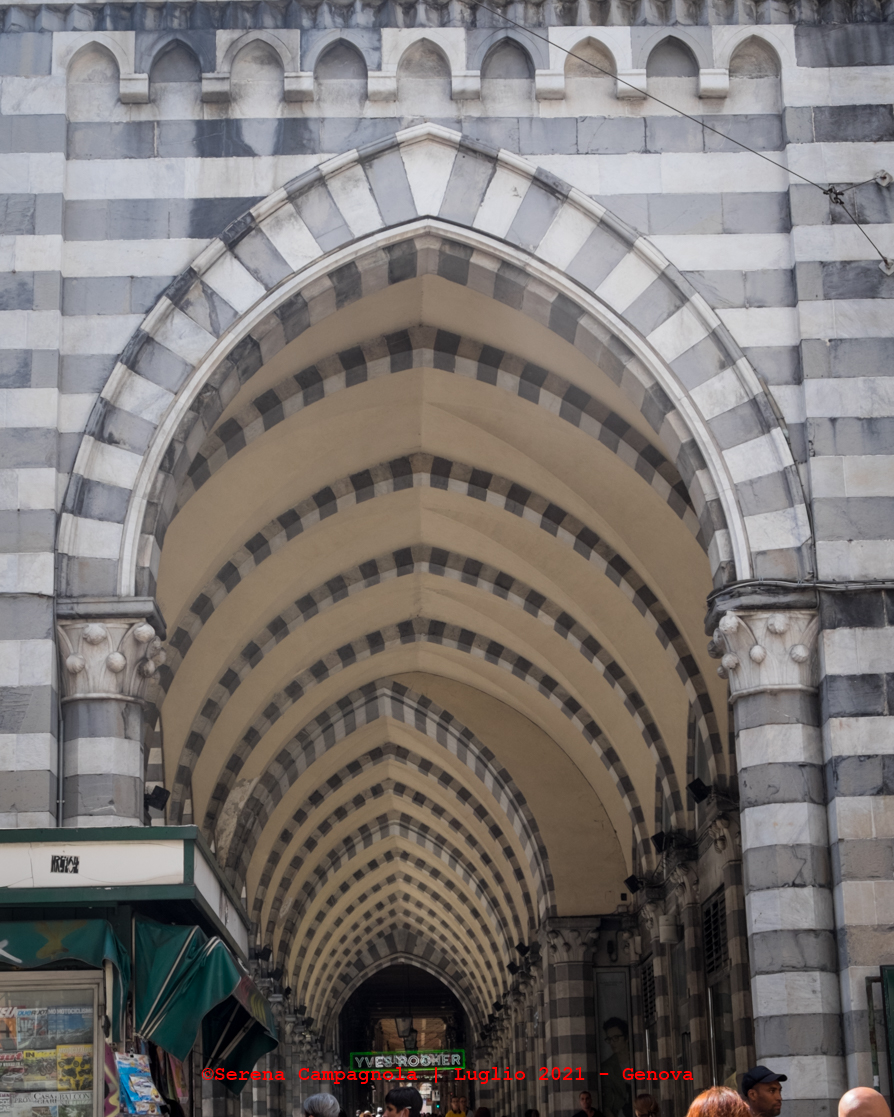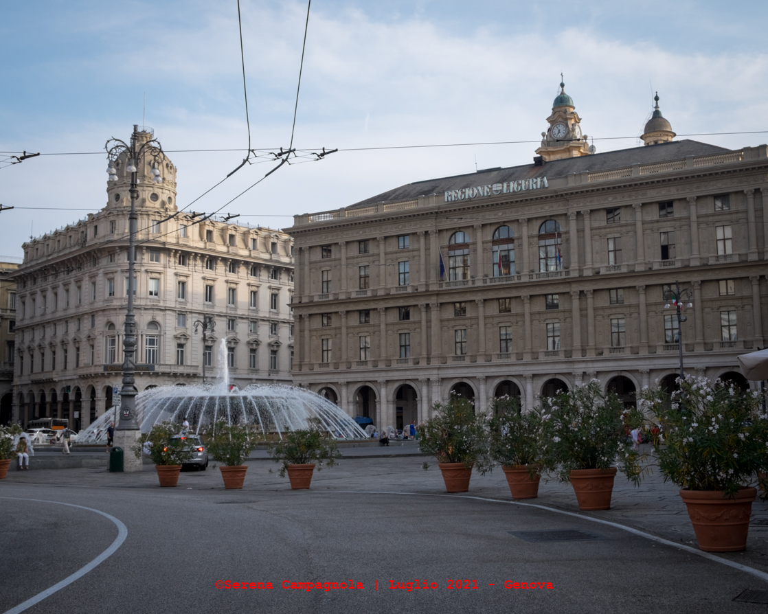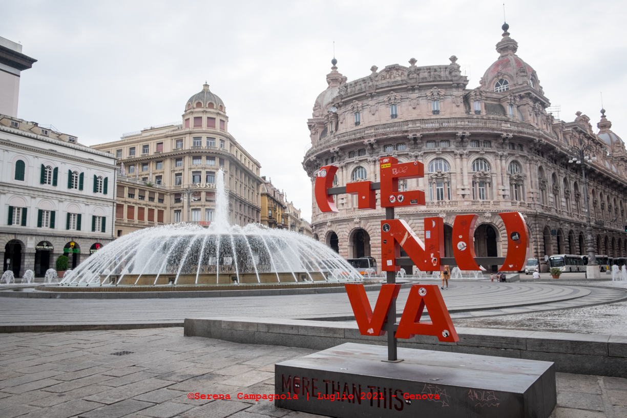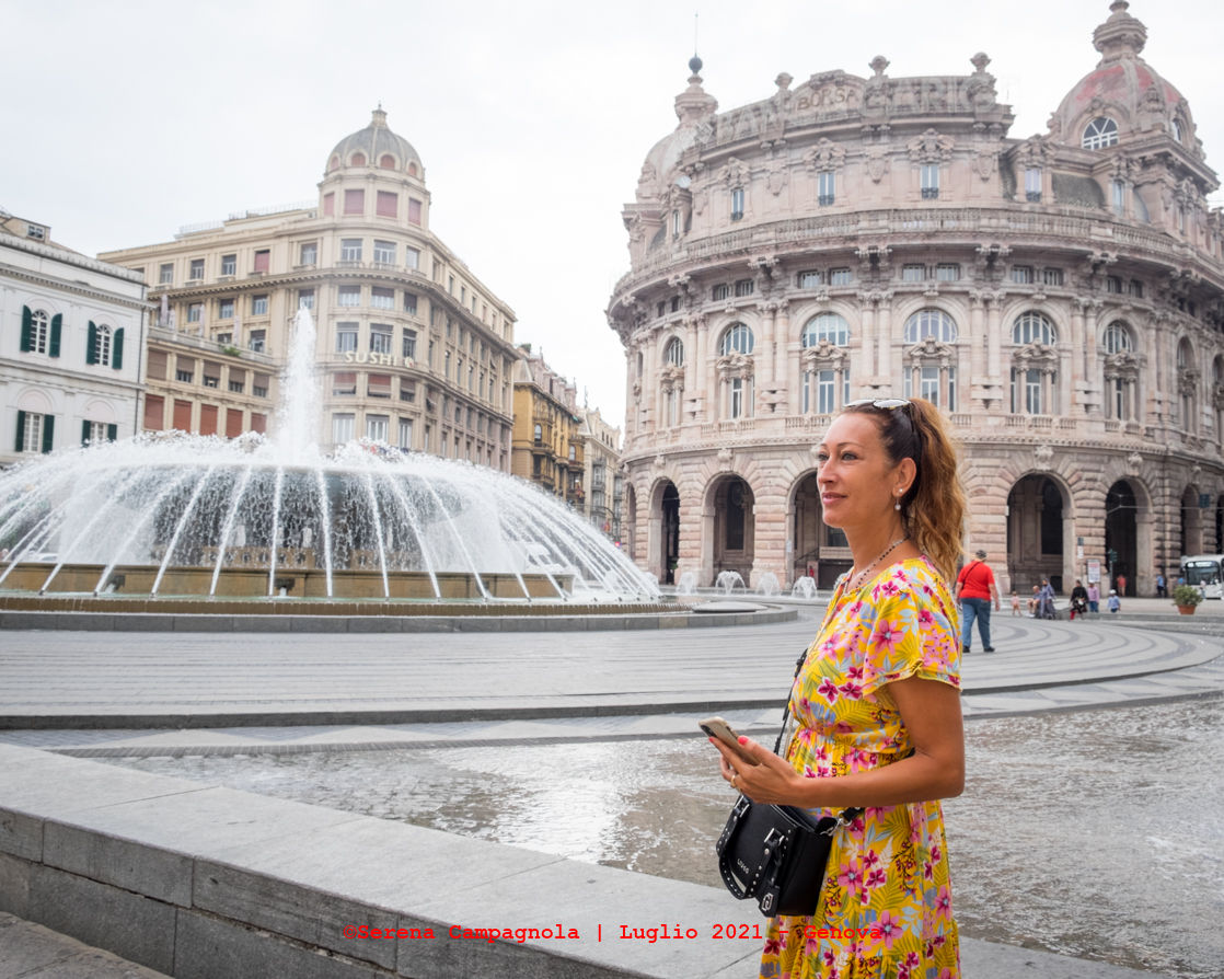 Siamo partite da Piazza De Ferrari, la piazza centrale e il cuore pulsante di Genova, riconoscibile dalla grande fontana circolare in bronzo situata al centro. Alzando gli occhi al cielo e girando lo sguardo a destra e sinistra, si possono ammirare quattro palazzi in stile eclettico (che sono oggi sedi di aziende e istituzioni), il Palazzo Ducale (sede di mostre e convegni), e il famoso Teatro Carlo Felice.