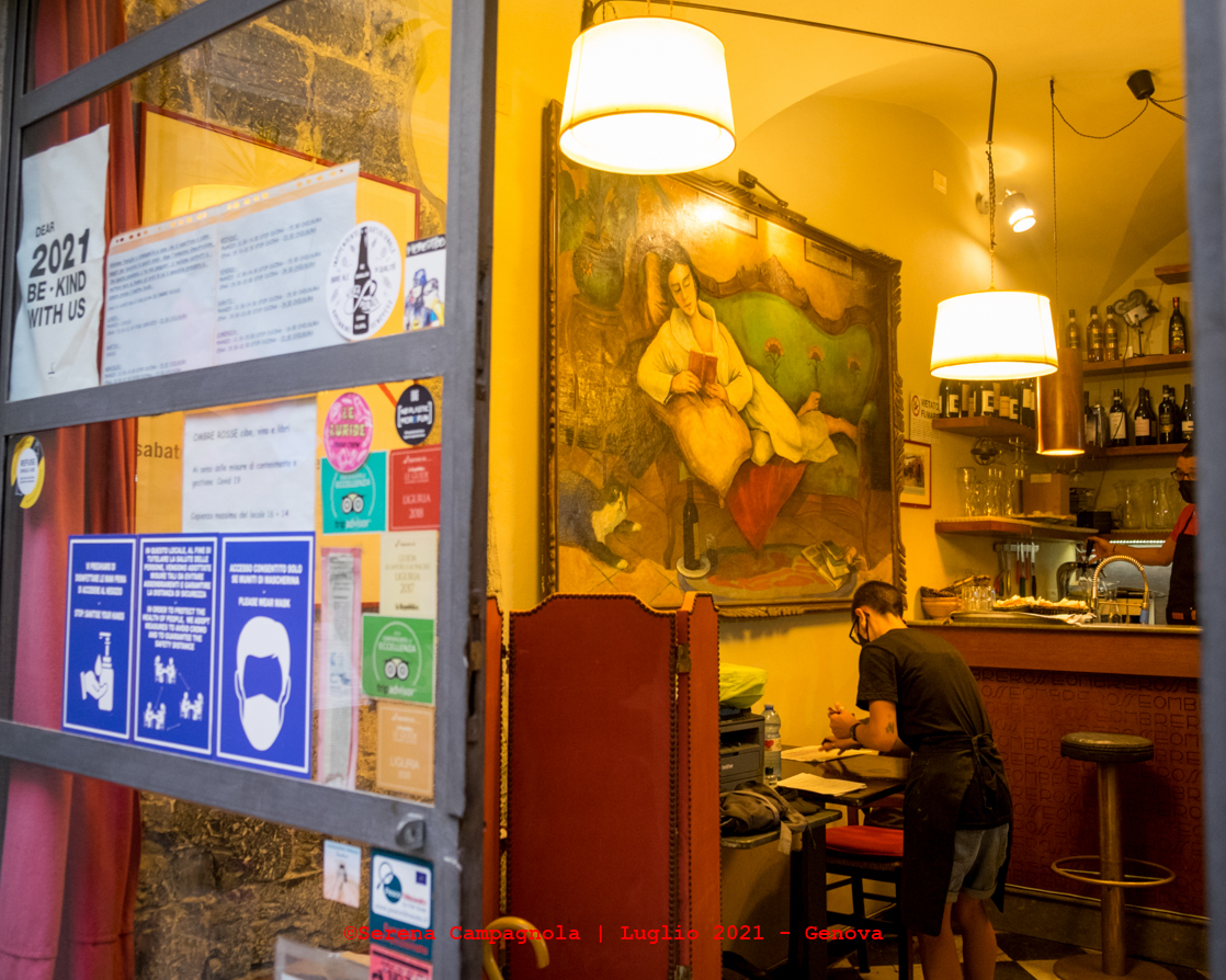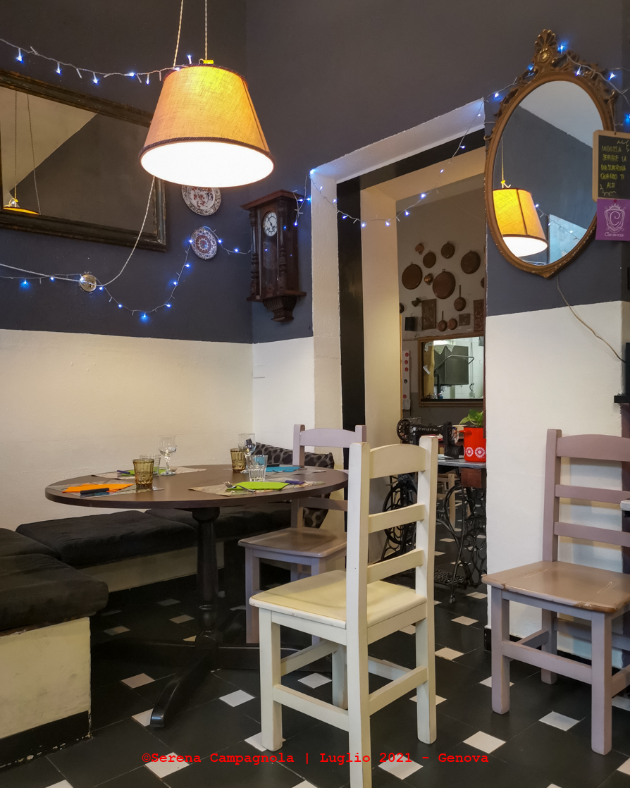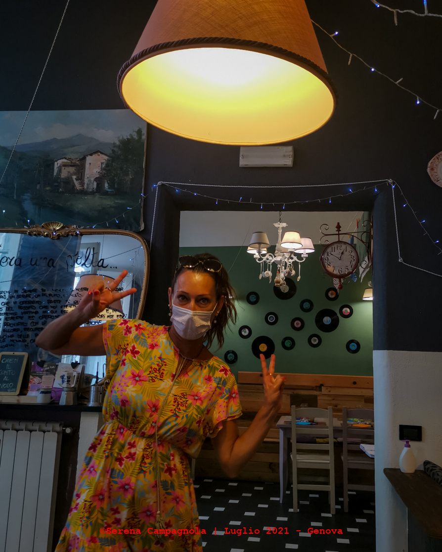 Per cena su consiglio di Aurora, un’amica di origine genovese, siamo andate Al Giardino Degli Indoratori. Abbiamo mangiato veramente molto bene, prendendo una pasta al pesto, un’orata alla ligure, un’acqua, una birra, un bicchiere di vino e due caffè, spendendo in due € 43. Il posto è veramente carino con tavoli sia all’interno che all’esterno, la signora che serve molto gentile e attenta.