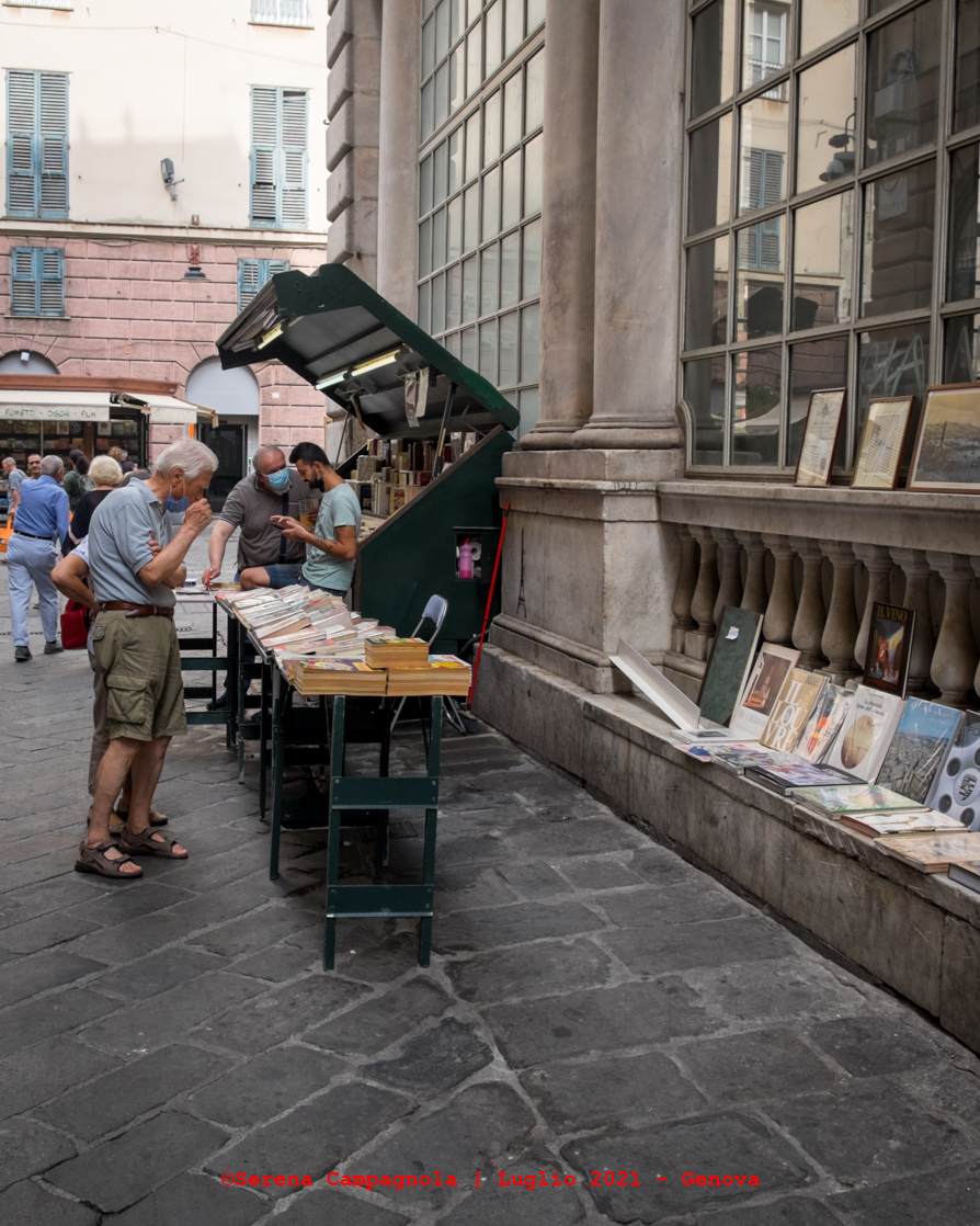 Avendo già deciso di non entrane all’acquario, abbiamo così proseguito verso i Carruggi: Piazza Caricamento, Ponte Reale, Piazza Banchi dove c’è la Loggia della Mercanzia (un bellissimo edificio eretto nel Medioevo che ospitava le contrattazioni di mercanti e banchieri). Abbiamo proseguito per Piazza Soziglia.