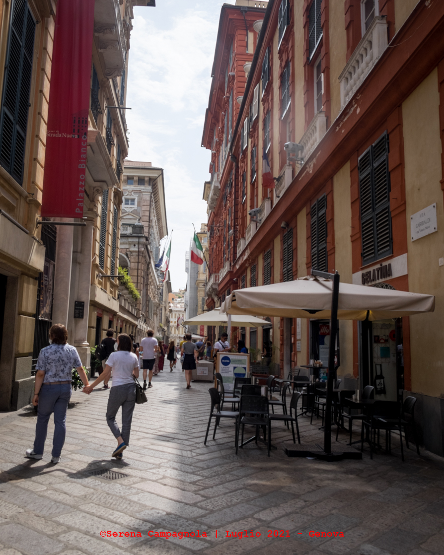 Siamo poi andate su Via Paolo Emilio Bensa e Via Cairoli, fino Via Garibaldi, Patrimonio dell’Umanità dell’UNESCO. E’ un viale lungo 250 metri e largo 7,5. Completamente chiuso al traffico. Su entrambi i lati della strada si possono ammirare eleganti e sfarzosi palazzi “i Rolli” che appartenevano all’antica signoria Genovese. Ve ne menziono solo alcuni: Palazzo Doria Tursi, Palazzo Bianco e Palazzo Rosso.