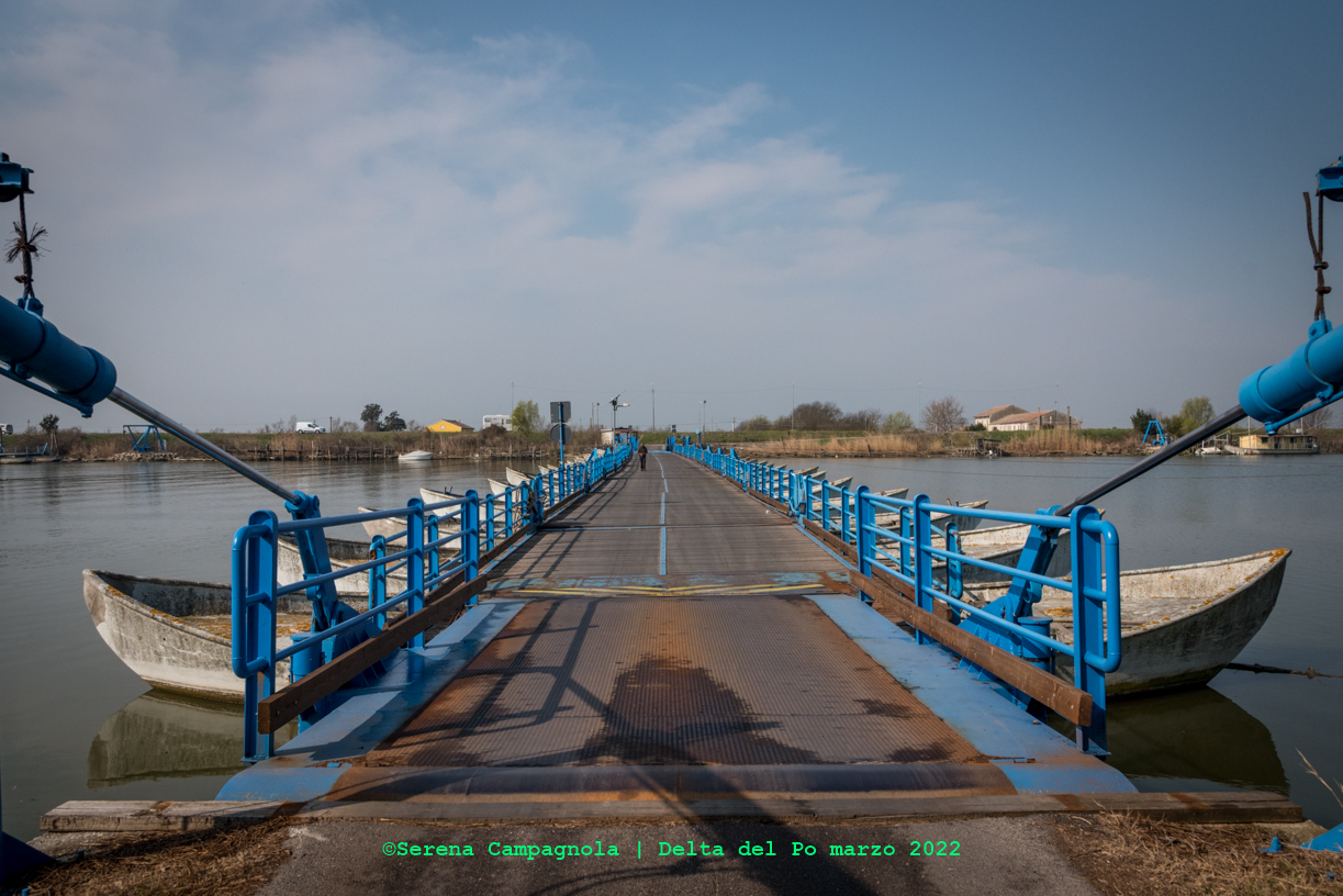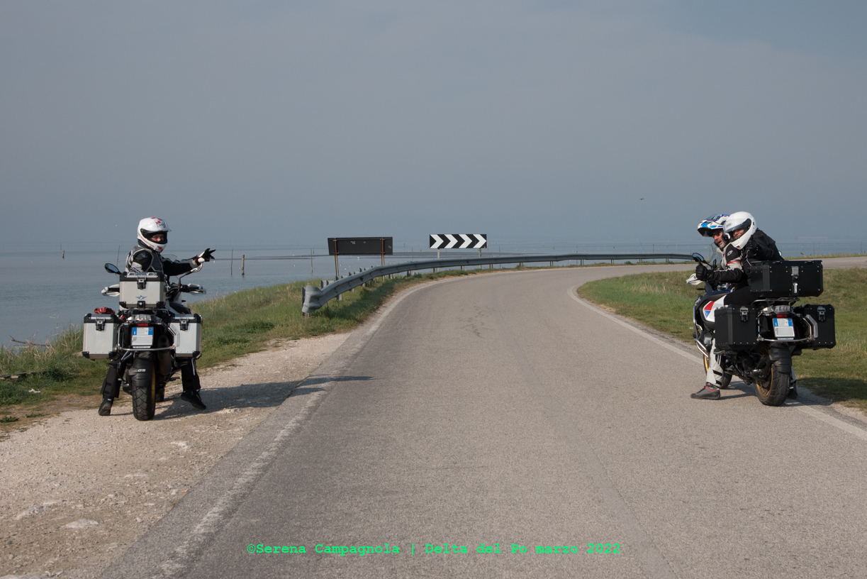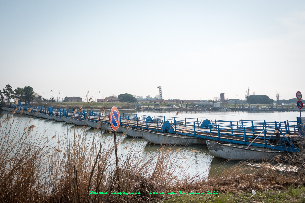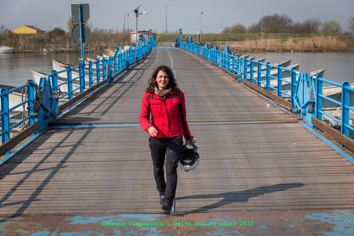 All’altezza di Cassella abbiamo preso la strada in direzione Santa Giulia (ovest), proseguendo sull’argine del Po della Donzella verso il ponte di barche del Po di Gnocca (passaggio gratuito) e poi sul ponte di barche del Po di Goro (€ 1,50 a moto). Devo dire che tra i due ponti di barche attraversati il primo è quello che mi è piaciuto di più!