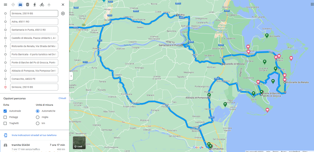 Da Adria siamo partiti in direzione Santamaria in Punta e per la prima volta abbiamo attraversato il Fiume Po, proseguendo per Adriano, Rivà e il Castello di Mesola, che abbiamo osservato dalla strada passandoci attorno.