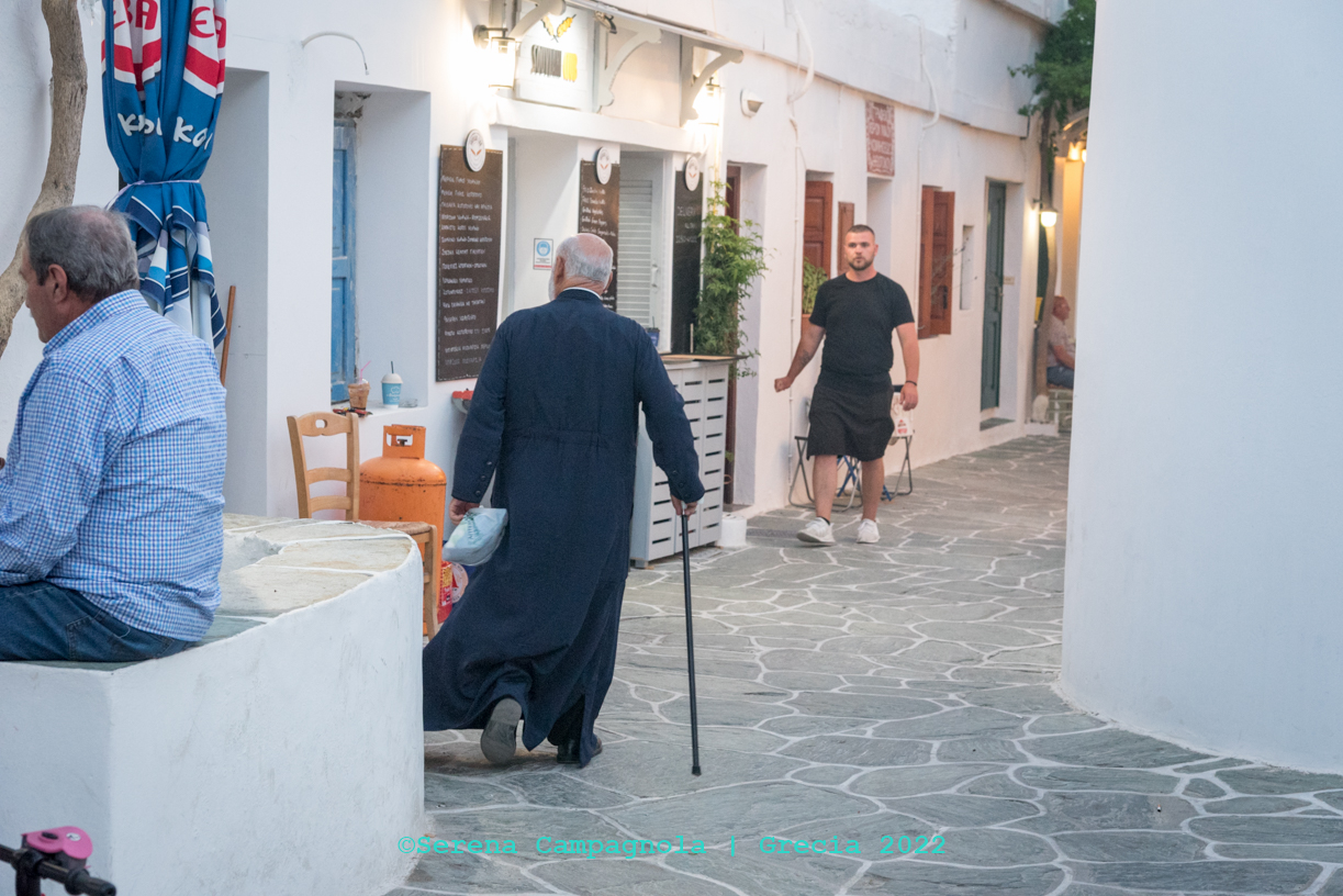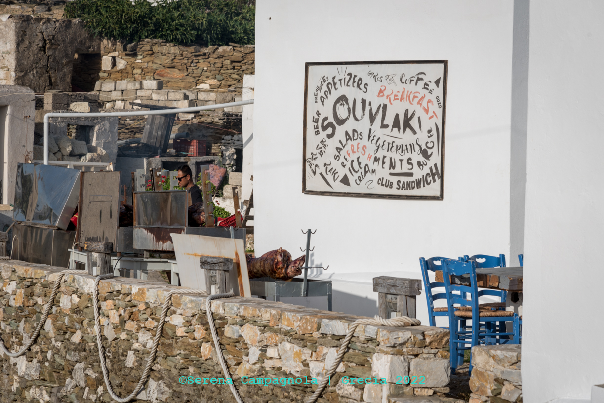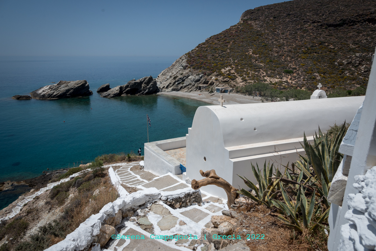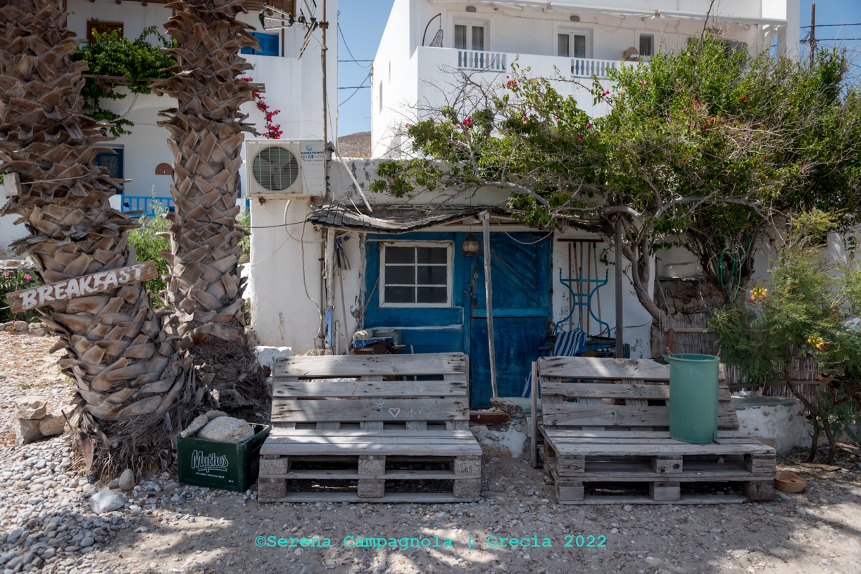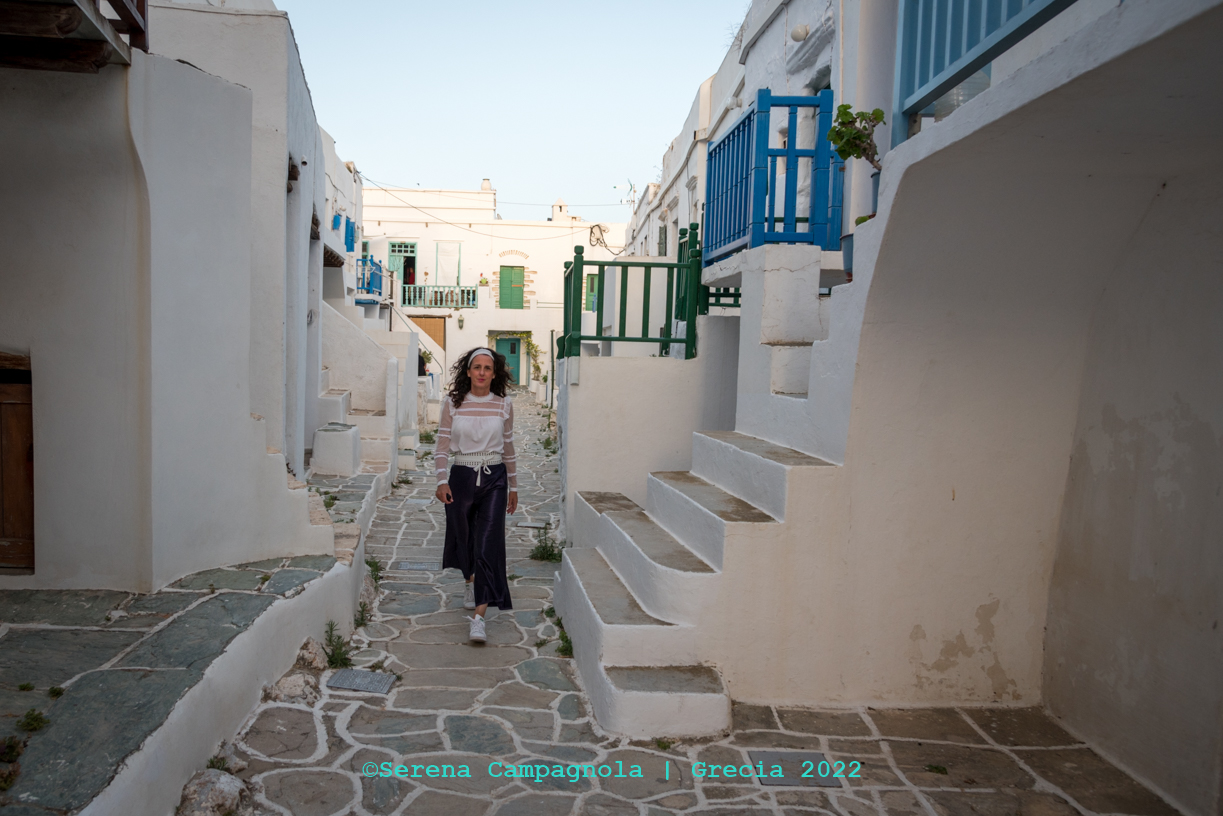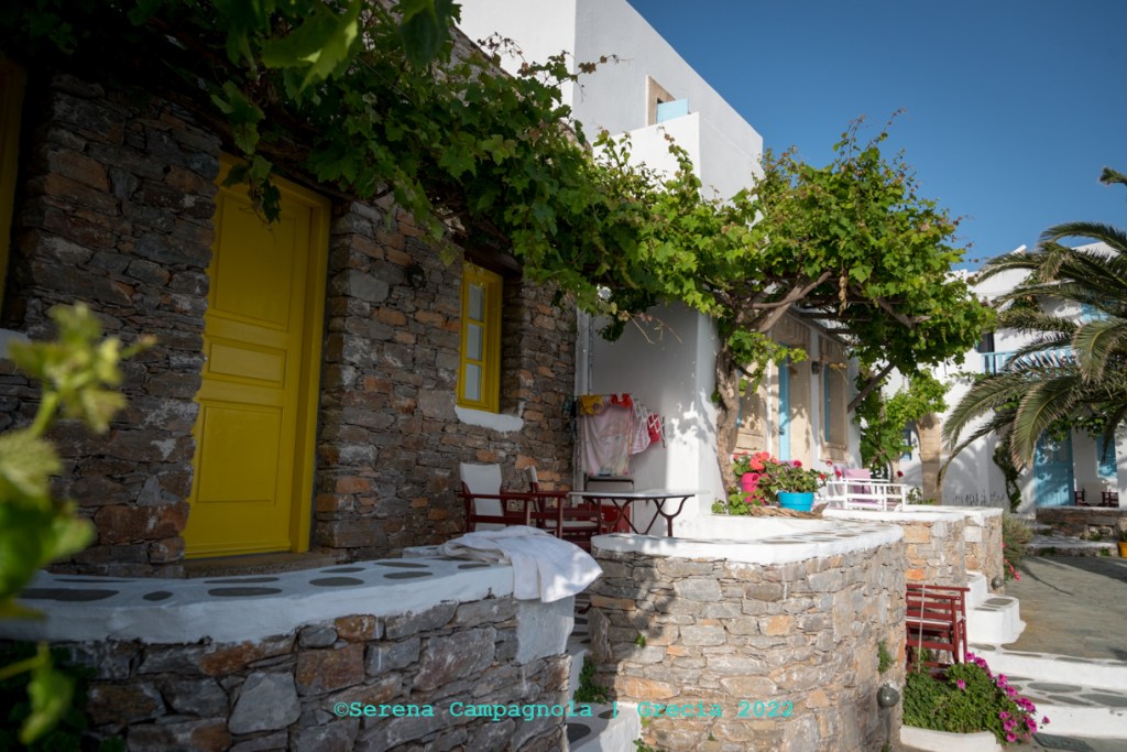 Costruita a ridosso di una falesia, Chora è in assoluto la più suggestiva tra le cittadine delle Cicladi che abbiamo visitato: sembra quasi sospesa, protesa verso il mare ma al tempo stesso protetta. Chiusa al traffico, la cittadina si sviluppa con strette viuzze attorno ad una fortezza e si caratterizza per tre graziose piazze in fila, contornate da ombrosi alberi e con le immancabili taverne con tavolini all’aperto.