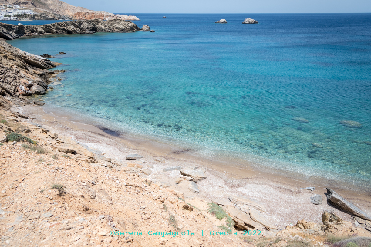 Dopo una camminata di circa 10 minuti da Agali, abbiamo raggiunto Galifos, una piccola spiaggia con acque cristalline dove c’eravamo solo noi due e dove ho trovato un po’ d’ombra.