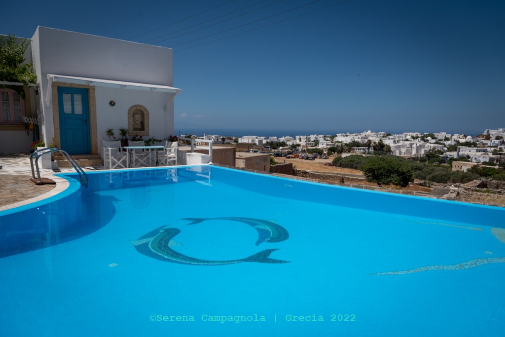 Arrivati a Folegandros c’era Theo ad aspettarci per portarci all’Ampelos Hotel, dove abbiamo soggiornato per 3 notti (dal 27 al 30 maggio) spendendo € 45,00 a notte a cui abbiamo aggiunto per la colazione € 7,00 a testa. Il posto mi è stato fortemente consigliato da Sandra, un’amica di un’amica. Pertanto, la prenotazione l’ho fatta direttamente con Theo via mail, senza pagare nessun anticipo e con i transfer dal porto in omaggio. E’ stata una delle sistemazioni che più abbiamo amato durante la nostra vacanza greca. Theo e la moglie sono attenti e veramente gentili e ospitali. La colazione preparata dalla moglie Areti è veramente squisita: yogurt e miele, toast, uovo, succo, caffè…