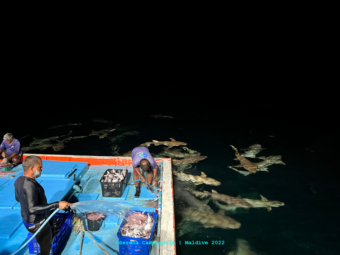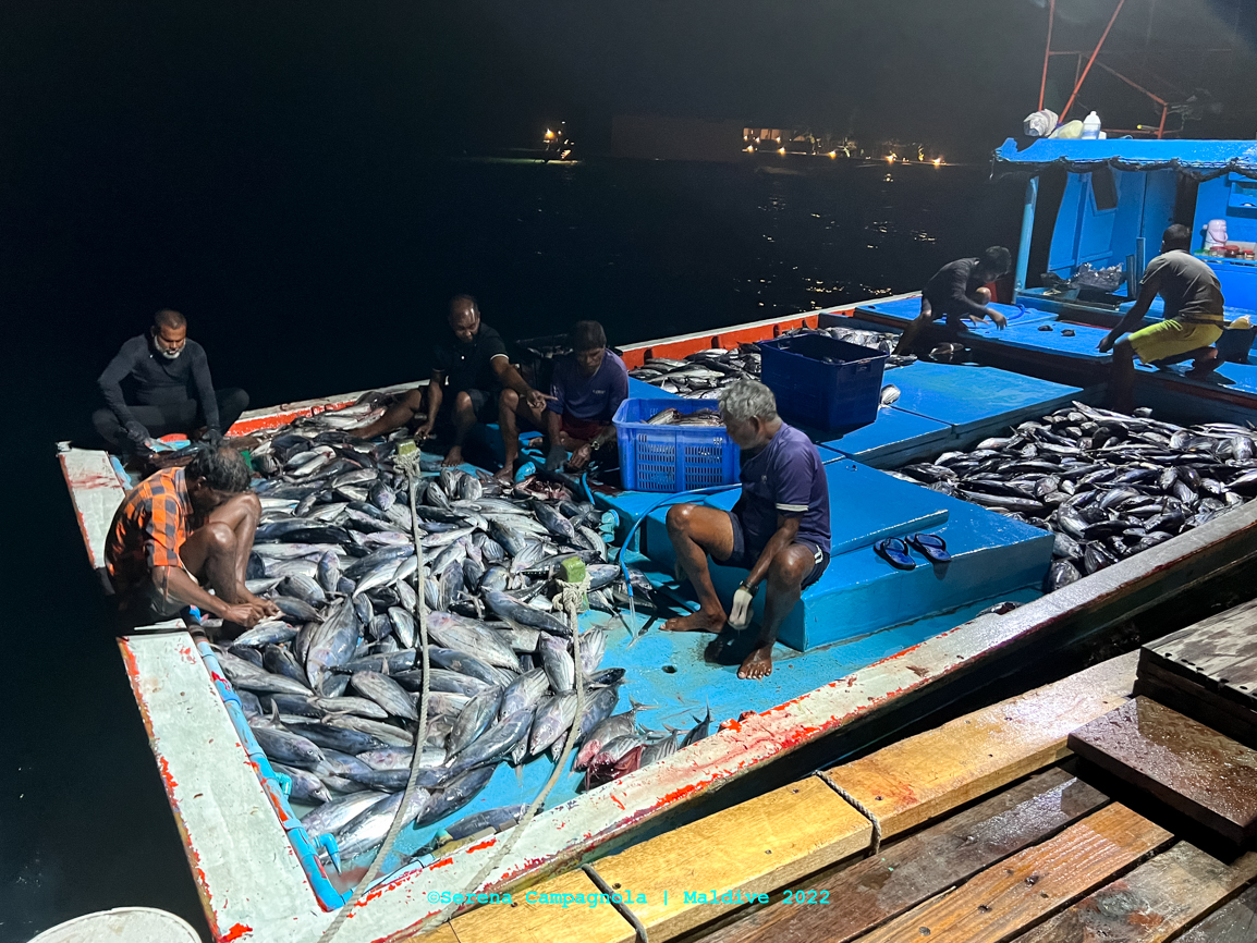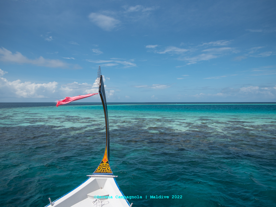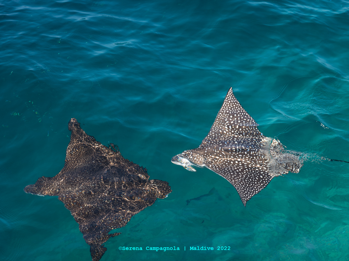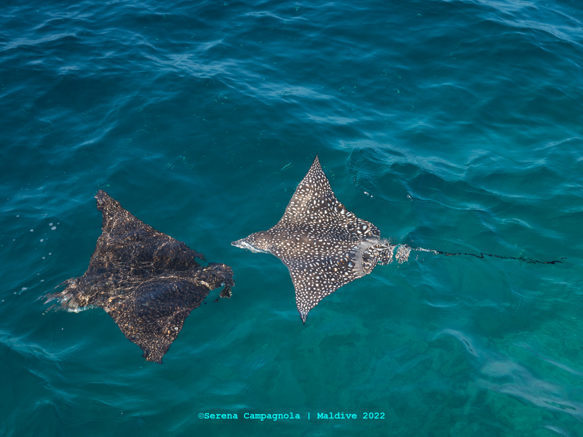L’isola è ricchissima di pesci, perché appena fuori dal pontile c’è un canale che collega l’Oceano con l’Atollo di Felidhoo. Abbiamo visto quasi tutto: aquile di mare, mobule, squali nutrice, pinna nera e pinna bianca, tartarughe e delfini… Ma non abbiamo visto quello che tanto sognavamo: le mante… Vorrà dire che ci riproveremo un’altra volta.