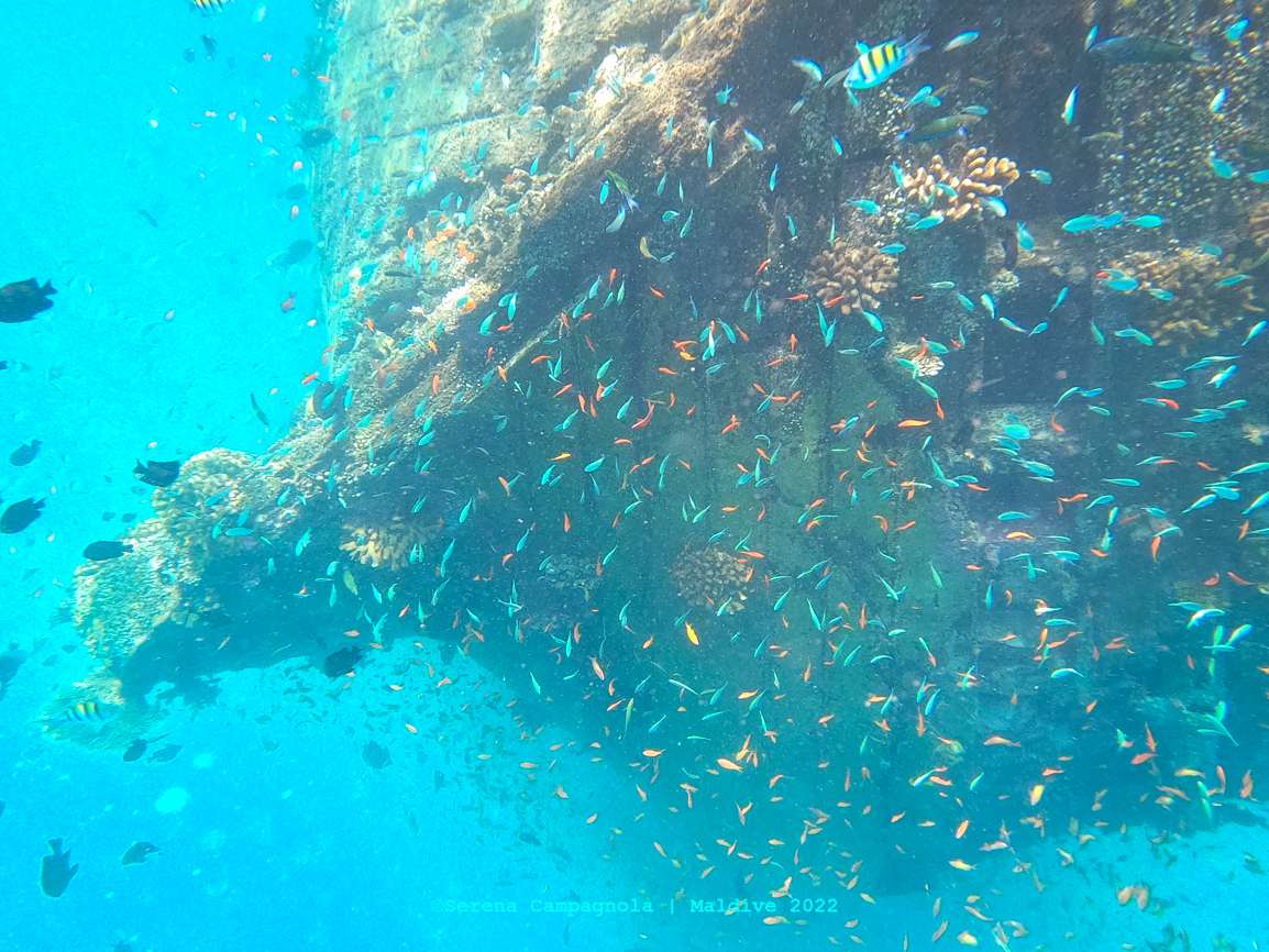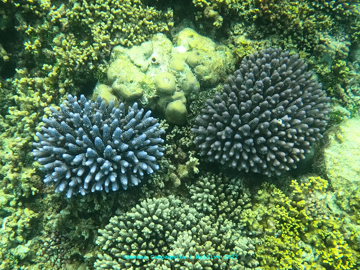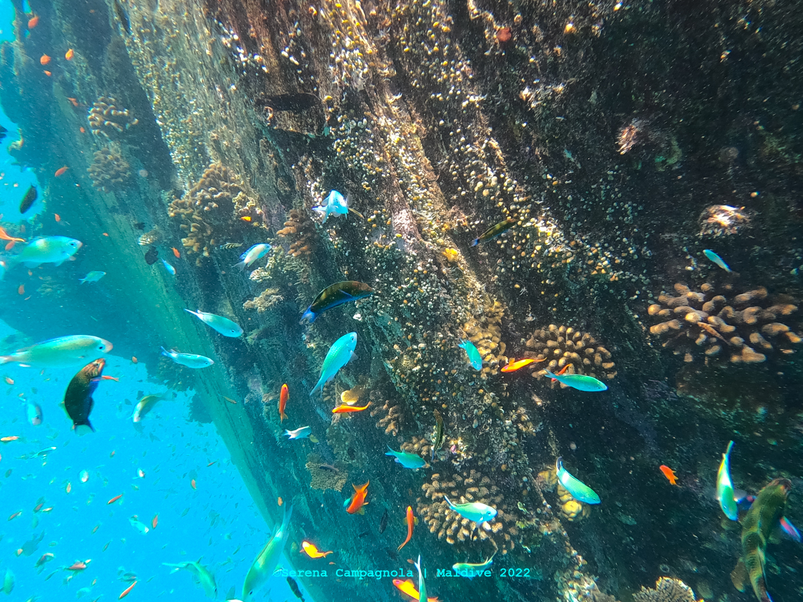 Purtroppo nel 2016, il surriscaldamento globale e il forte effetto di El Niño hanno portato a un’alta temperatura della superficie del mare che ha causato la decolorazione di quasi il 60 percento delle spettacolari barriere delle Maldive e ampie fasce delle barriere delle Maldive vennero eliminate. Tuttavia, in questi anni gli scienziati hanno registrato segnali di ripresa: molti coralli neonati e una varietà di specie che stanno ripopolando zone in cui si pensava fossero estinti. E infatti rispetto al 2019, abbiamo visto qualche colore in più.