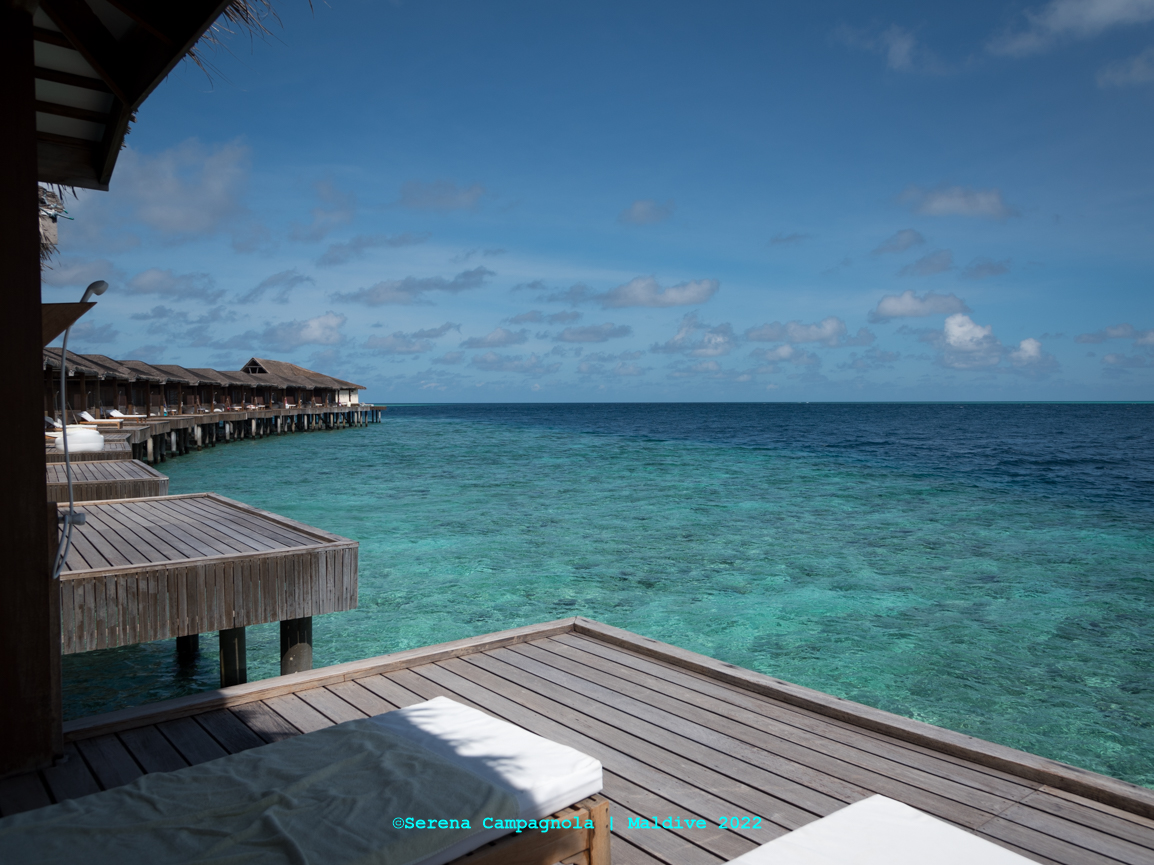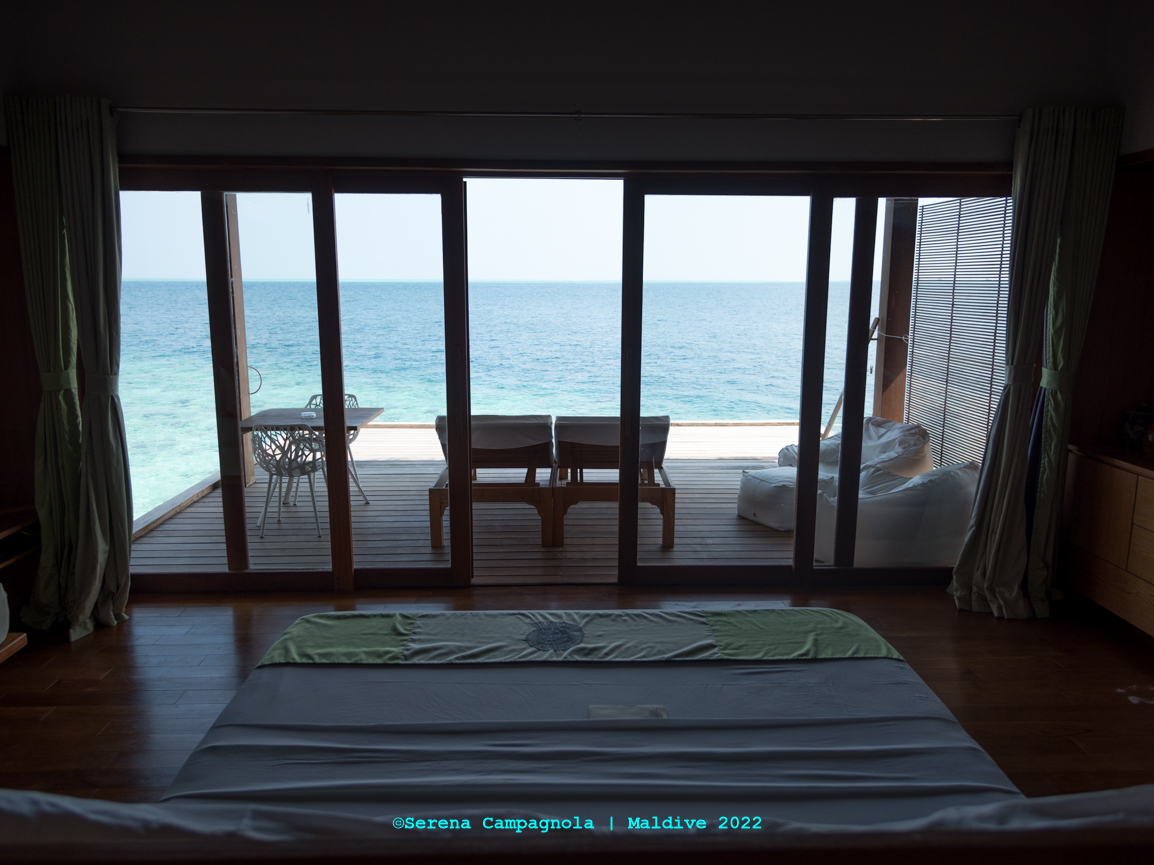 Al Seaclub Dhiggiri abbiamo soggiornato in overwater bungalow con la formula all inclusive. La nostra stanza (la numero 34) BELLISSSSSIMA! Spaziosa, luminosa, con una vista pazzesca e con un letto comodissimo. Abbiamo dormito divinamente e svegliarsi ammirando l’alba con il rumore del mare non ha prezzo!