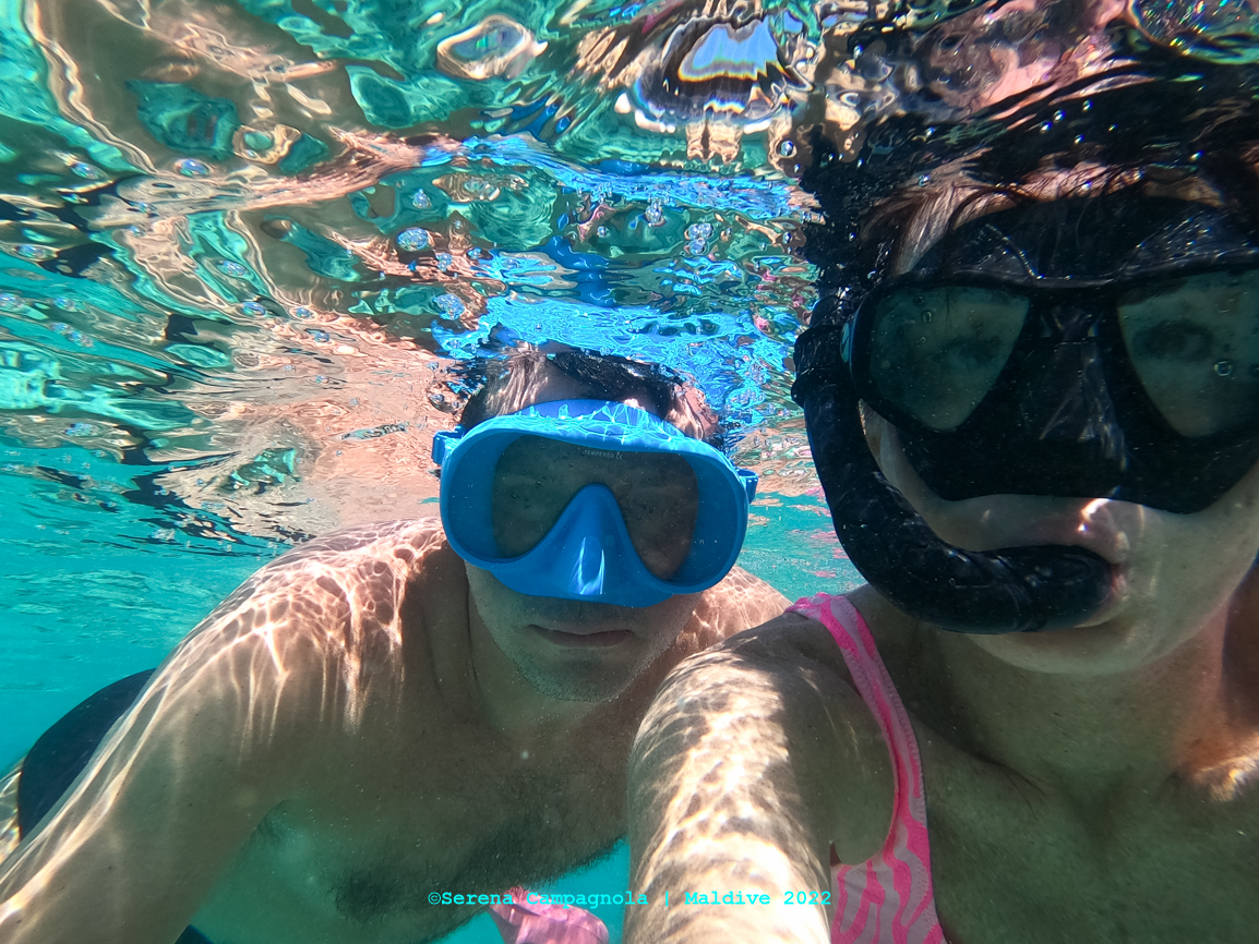 Questa volta il viaggio è stato praticamente scelto da Leo, mio marito. Io ho provato a stuzzicarlo con alternative (safari+mare in Kenya oppure Islanda) ma non c’è stato verso di fargli cambiare idea. Voleva andare alle Maldive e così è stato…e vi dirò che è stata proprio la vacanza di cui avevamo bisogno: relax, nuotate, spiagge spettacolari e snorkeling molto divertente!